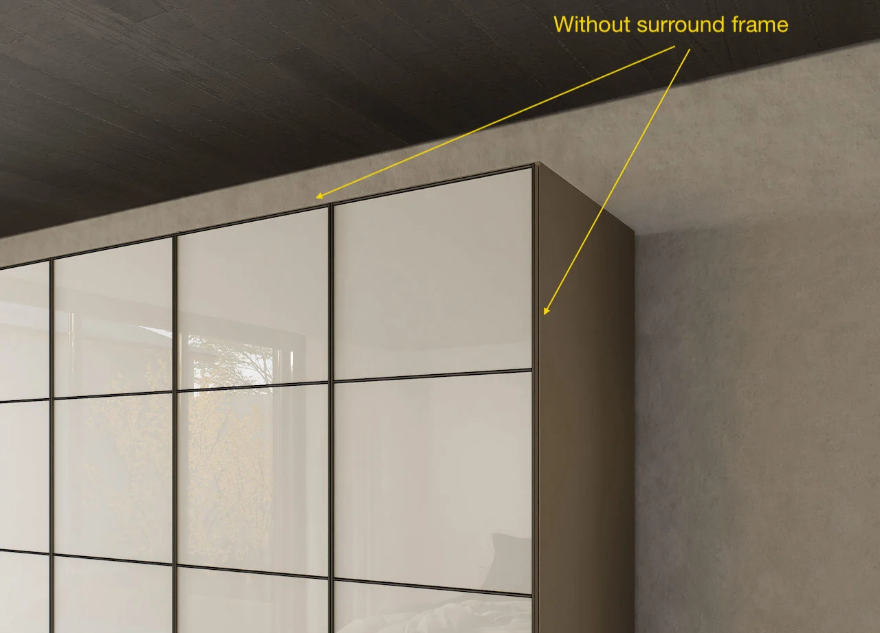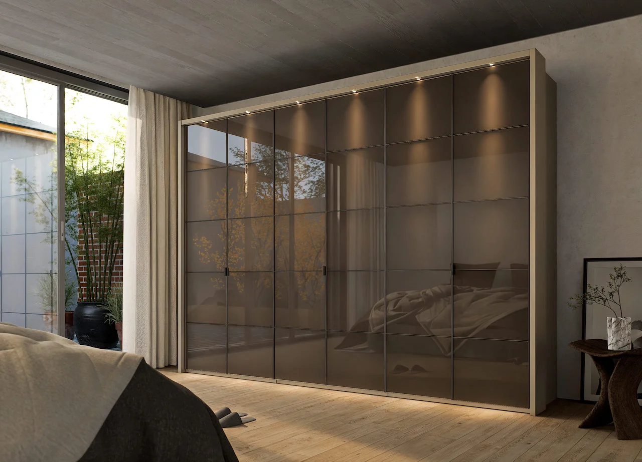 - 6 smooth-closing hinged doors with geometric panel glass fronts