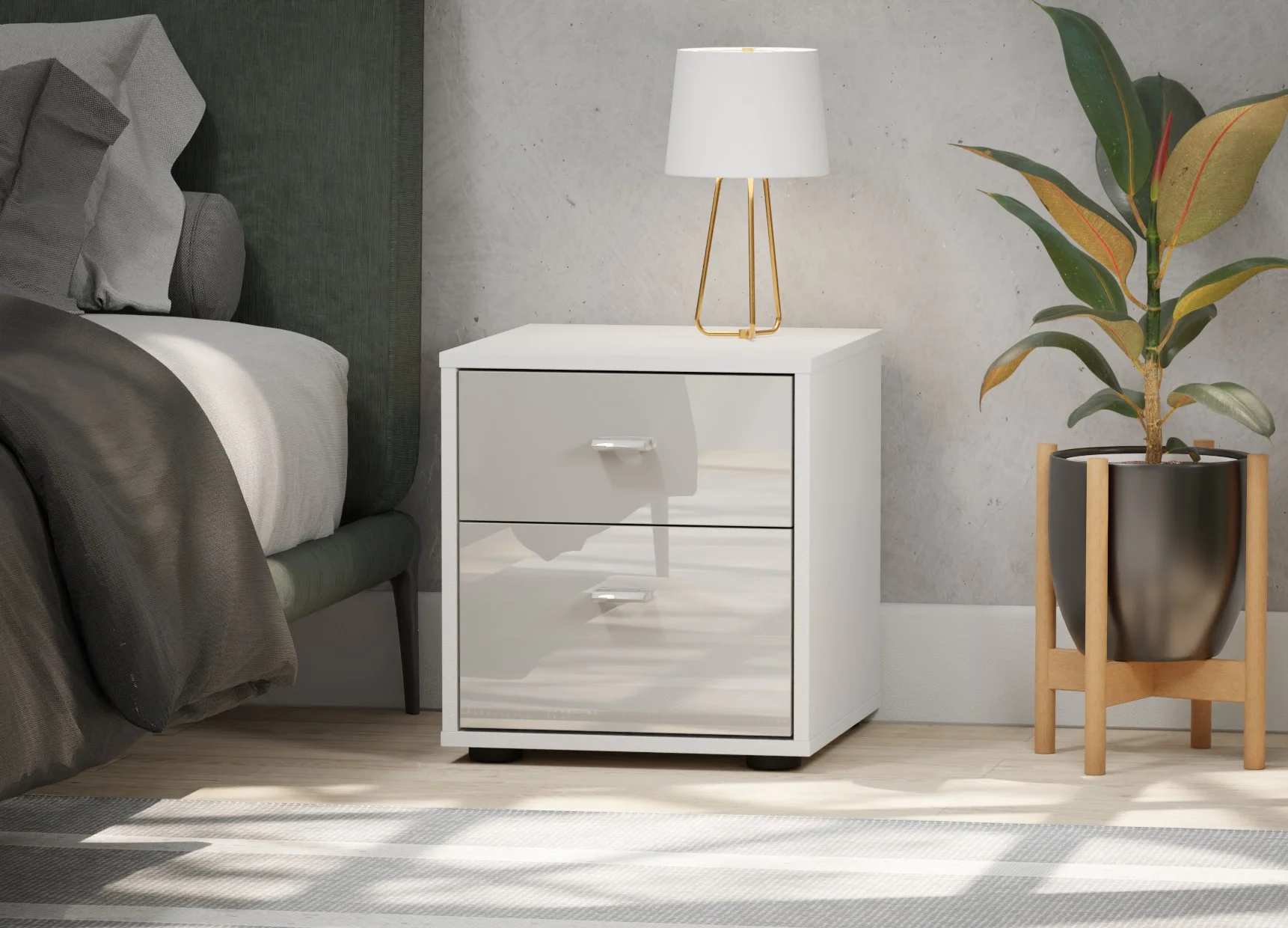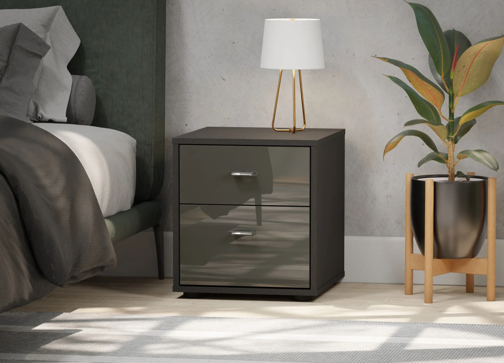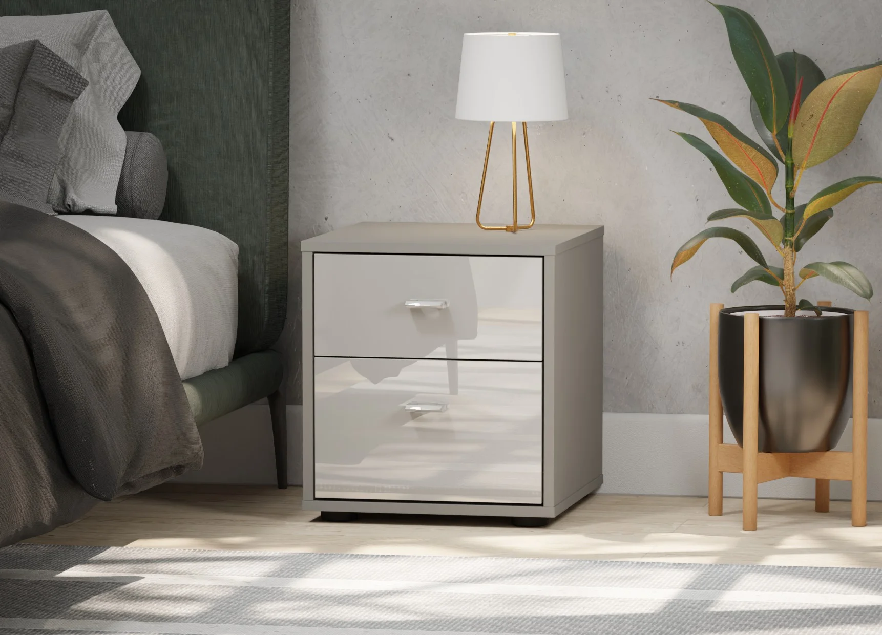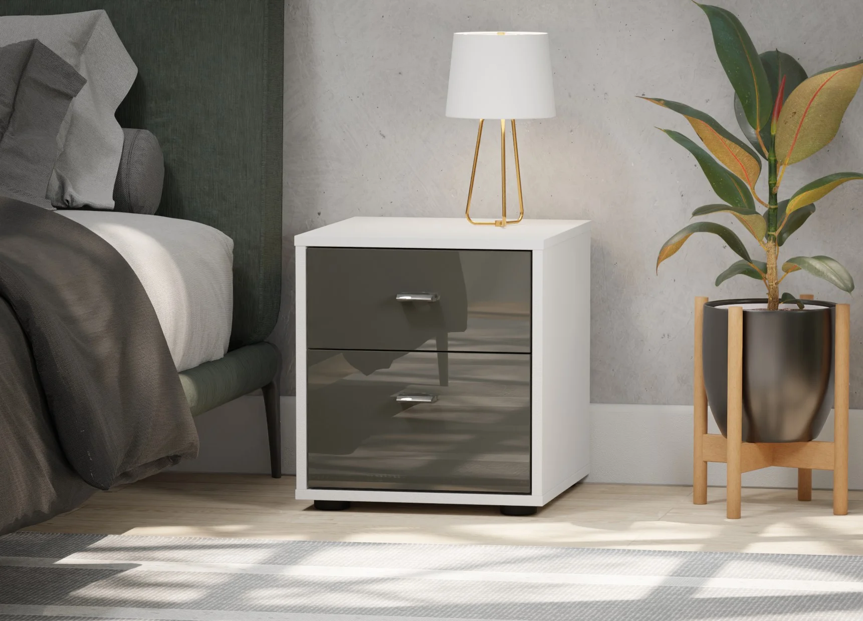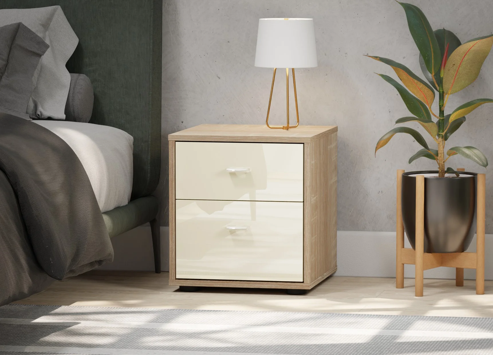 The Wiemann Tokio bedside table is a compact yet versatile storage piece designed to sit beautifully alongside modern wardrobes and beds. With its clean lines and two smooth-gliding drawers, it offers practical space for night-time essentials while keeping your bedroom calm and uncluttered. Part of Wiemann’s VIP collection, it features the brand’s signature silver-grey striped interior and is available in a wide choice of finishes, from light tones like white and champagne to deeper shades such as graphite and rustic oak. You can also choose matching matt fronts or refined glass options, along with silver, chrome, or slate handles to tailor the look to your space.