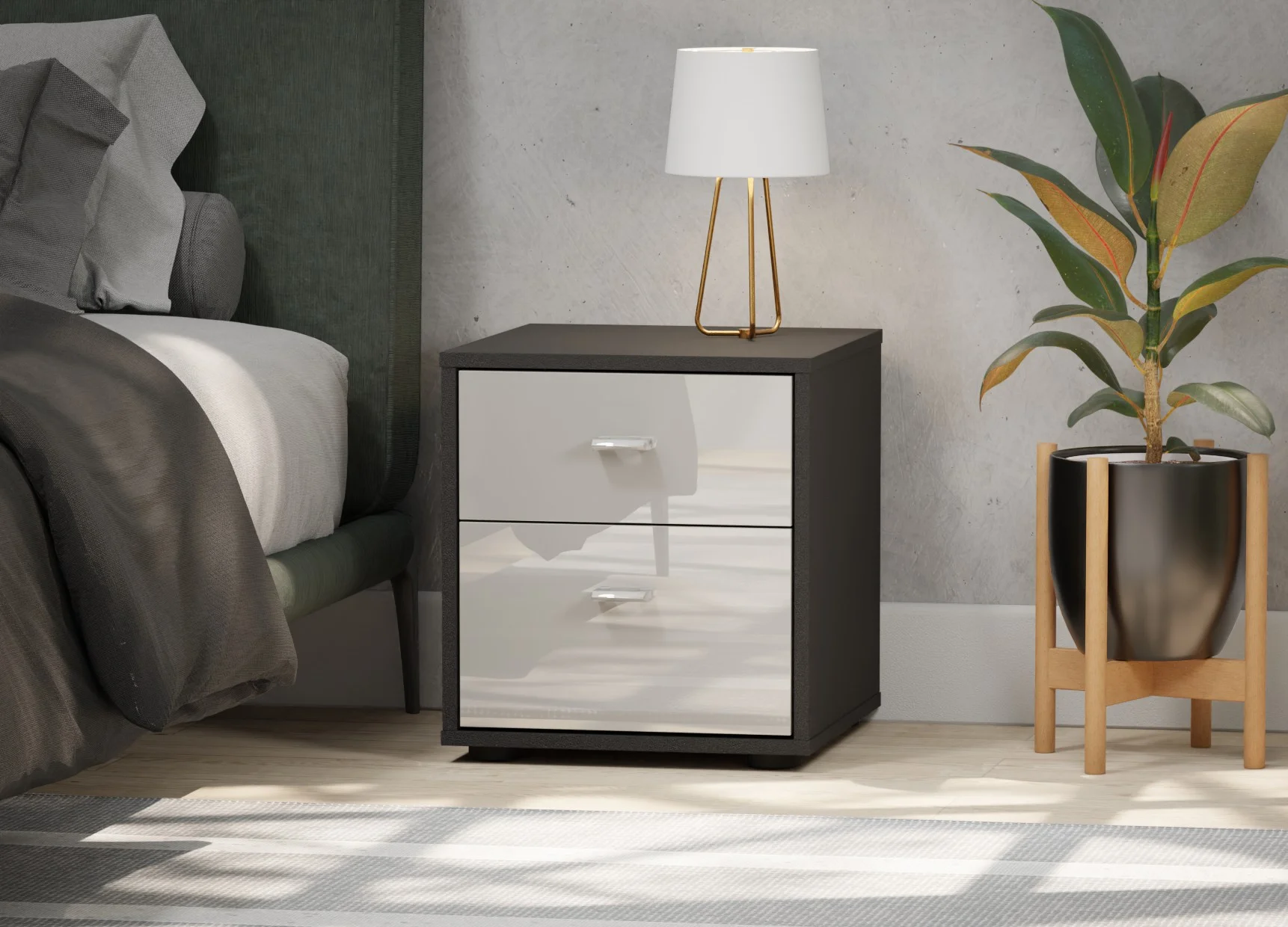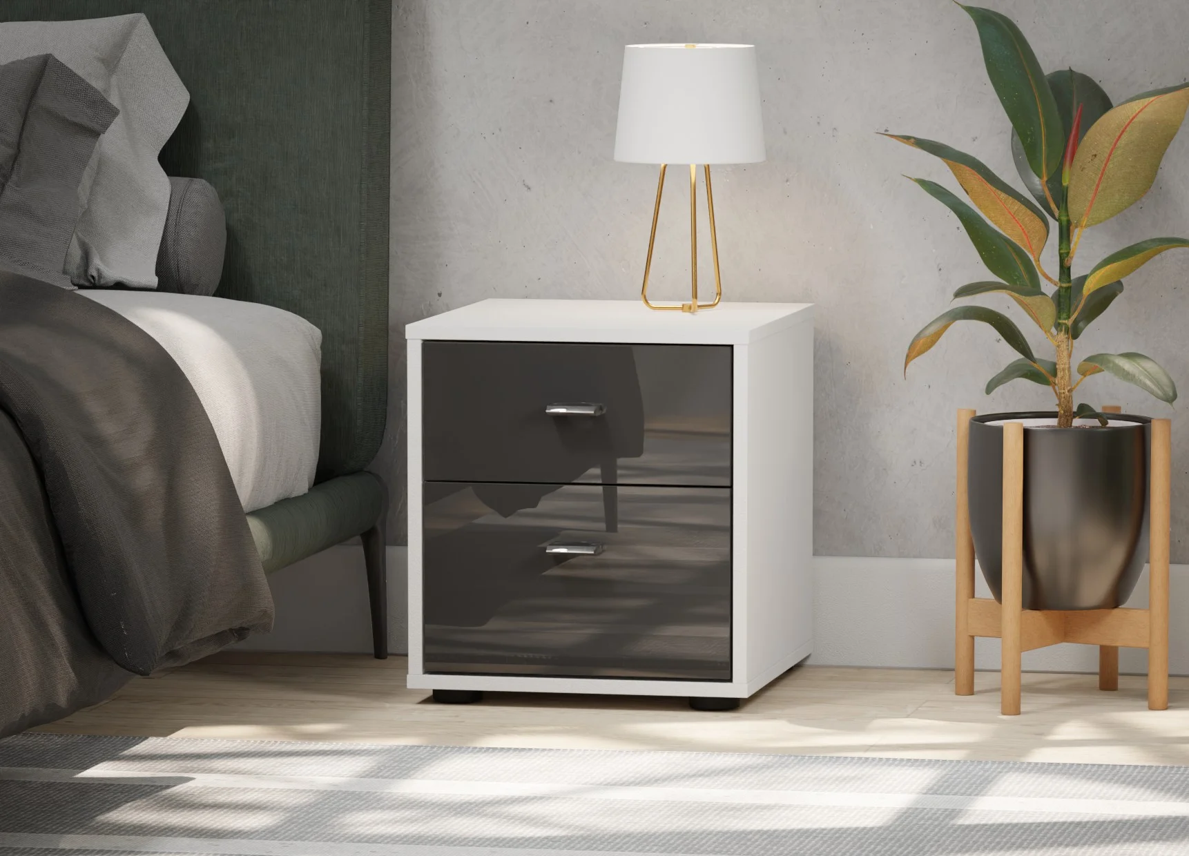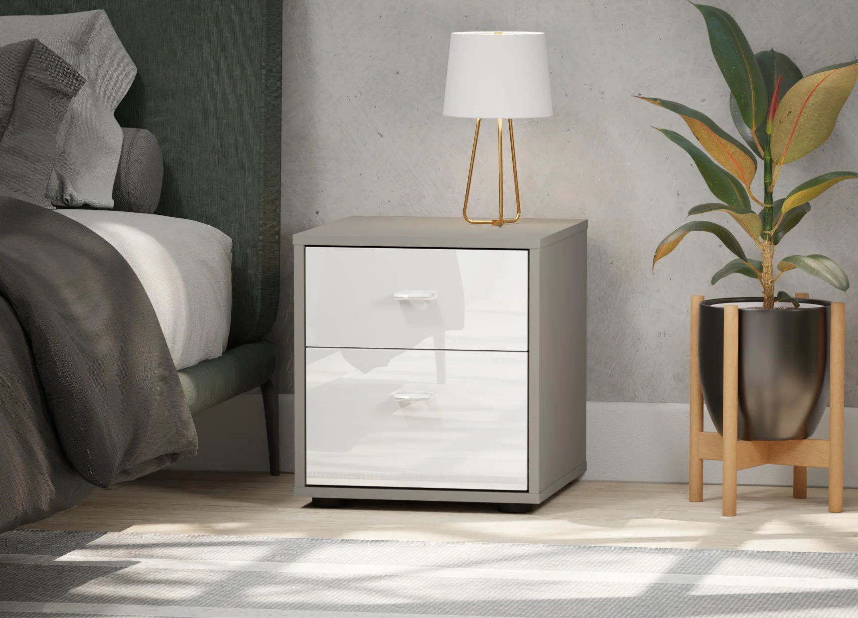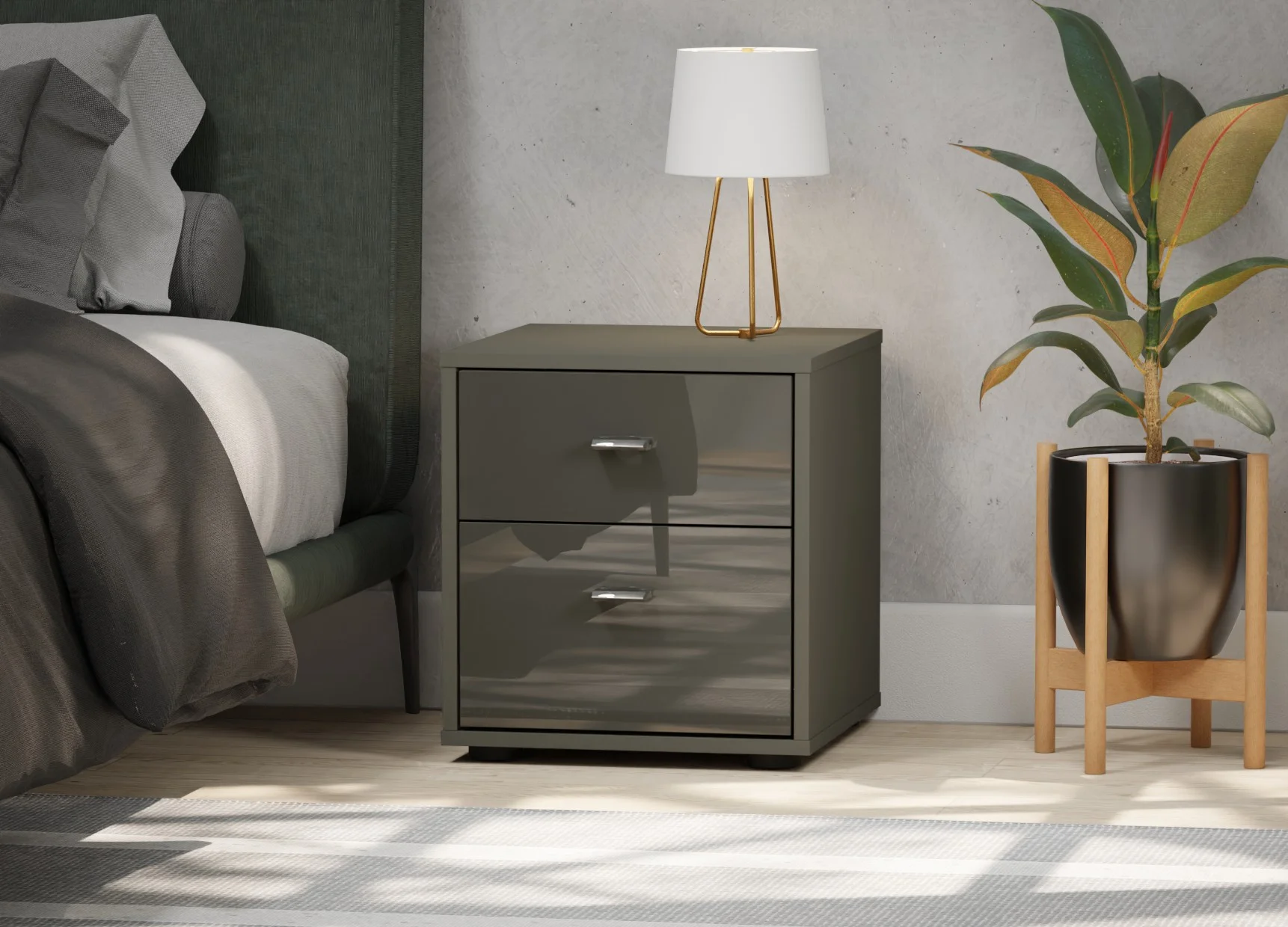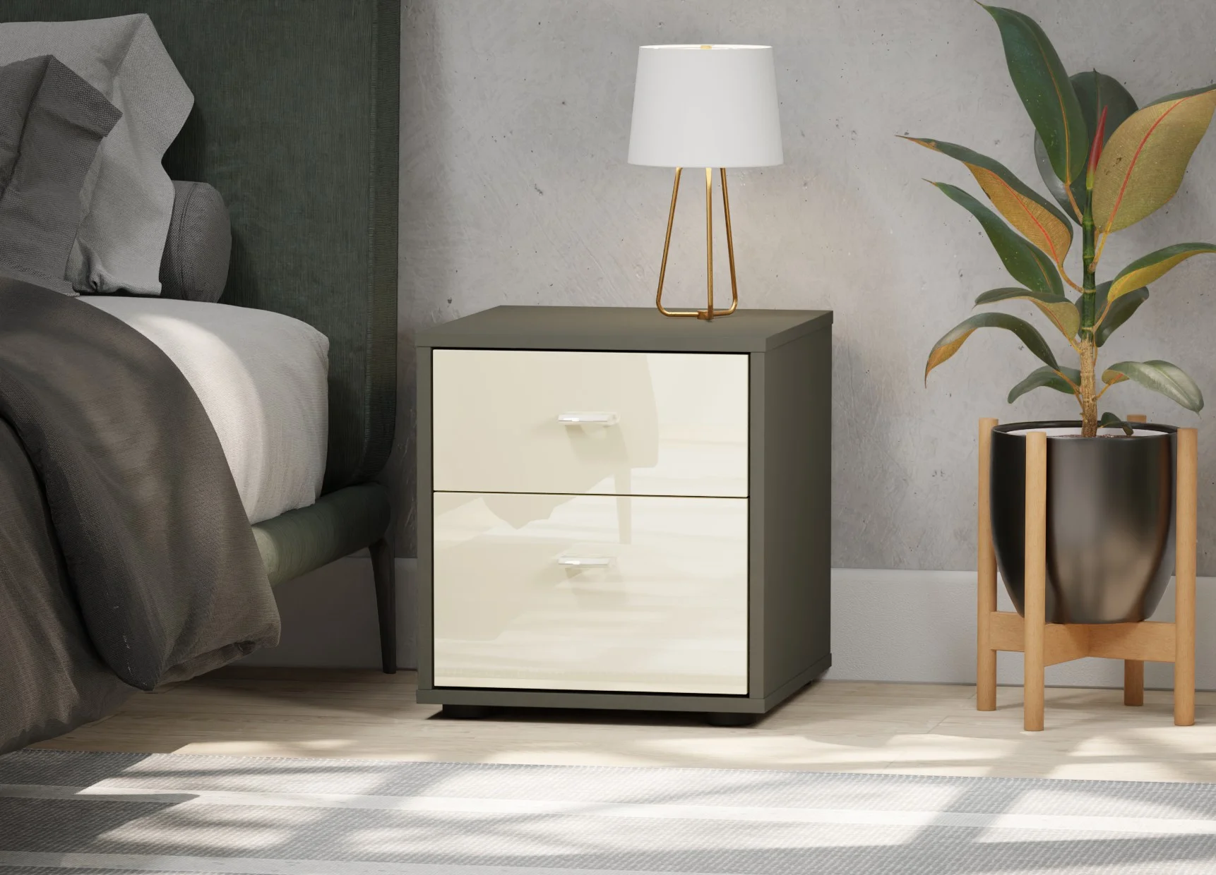 The Wiemann Tokio bedside table is a compact yet versatile storage piece designed to sit beautifully alongside modern wardrobes and beds. With its clean lines and two smooth-gliding drawers, it offers practical space for night-time essentials while keeping your bedroom calm and uncluttered. Part of Wiemann’s VIP collection, it features the brand’s signature silver-grey striped interior and is available in a wide choice of finishes, from light tones like white and champagne to deeper shades such as graphite and rustic oak. You can also choose matching matt fronts or refined glass options, along with silver, chrome, or slate handles to tailor the look to your space.