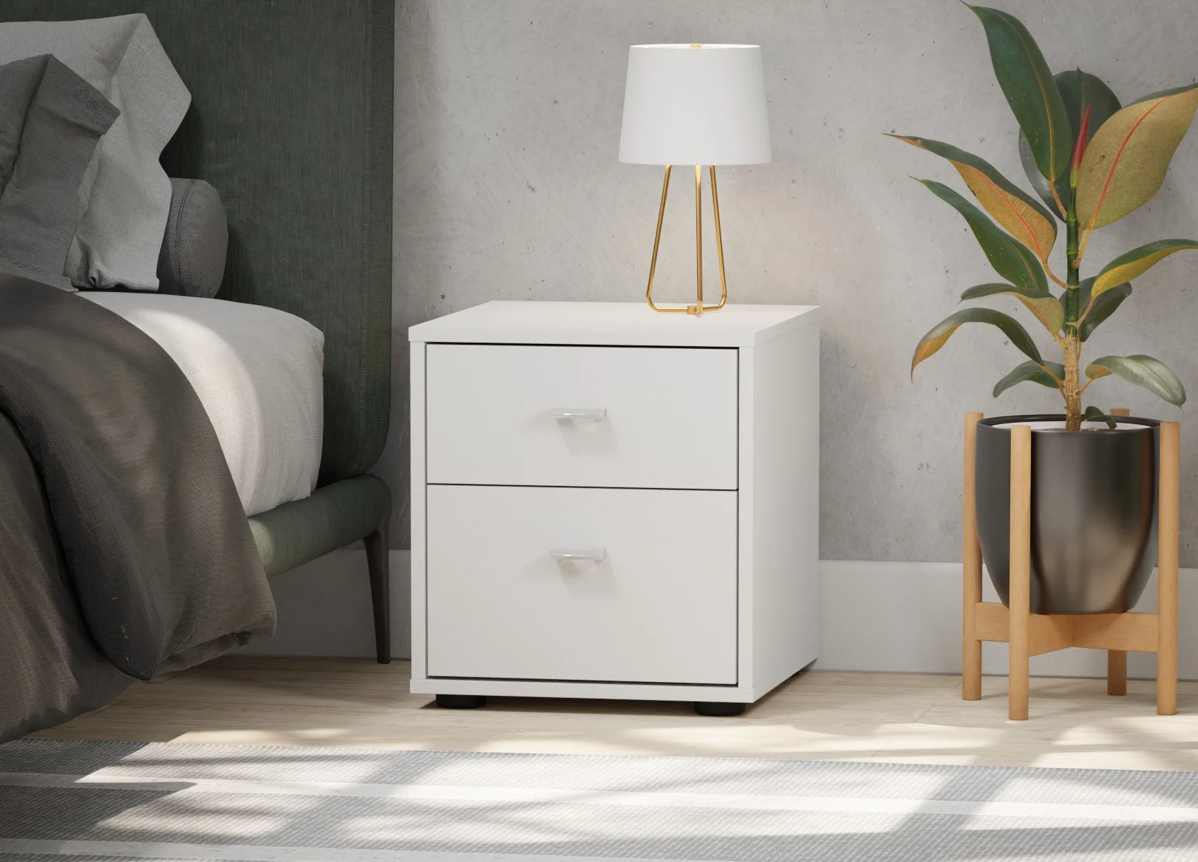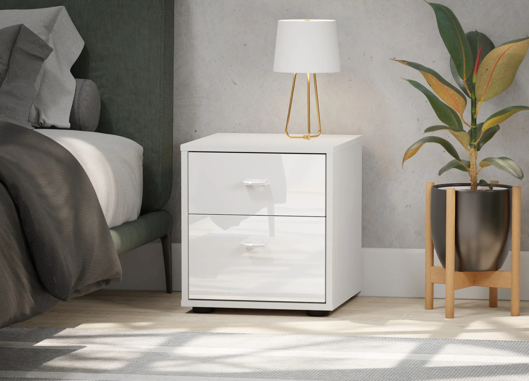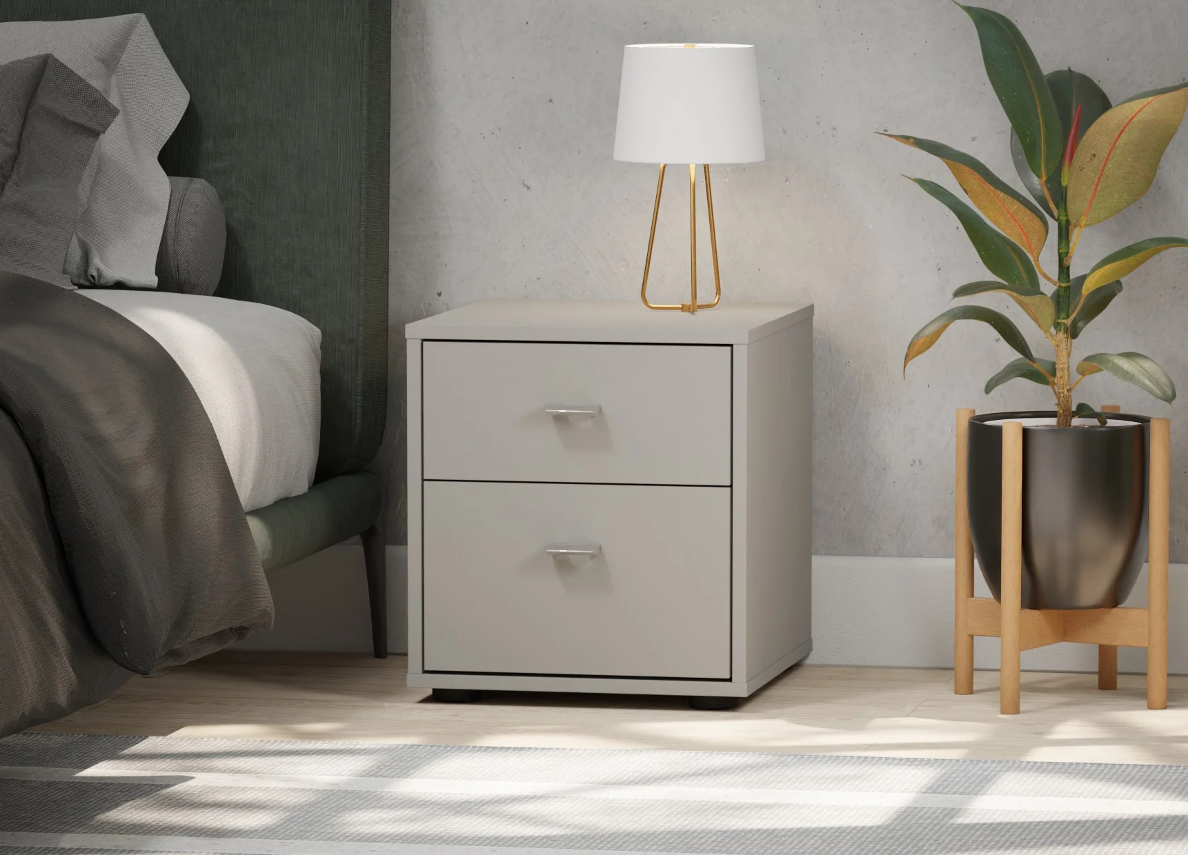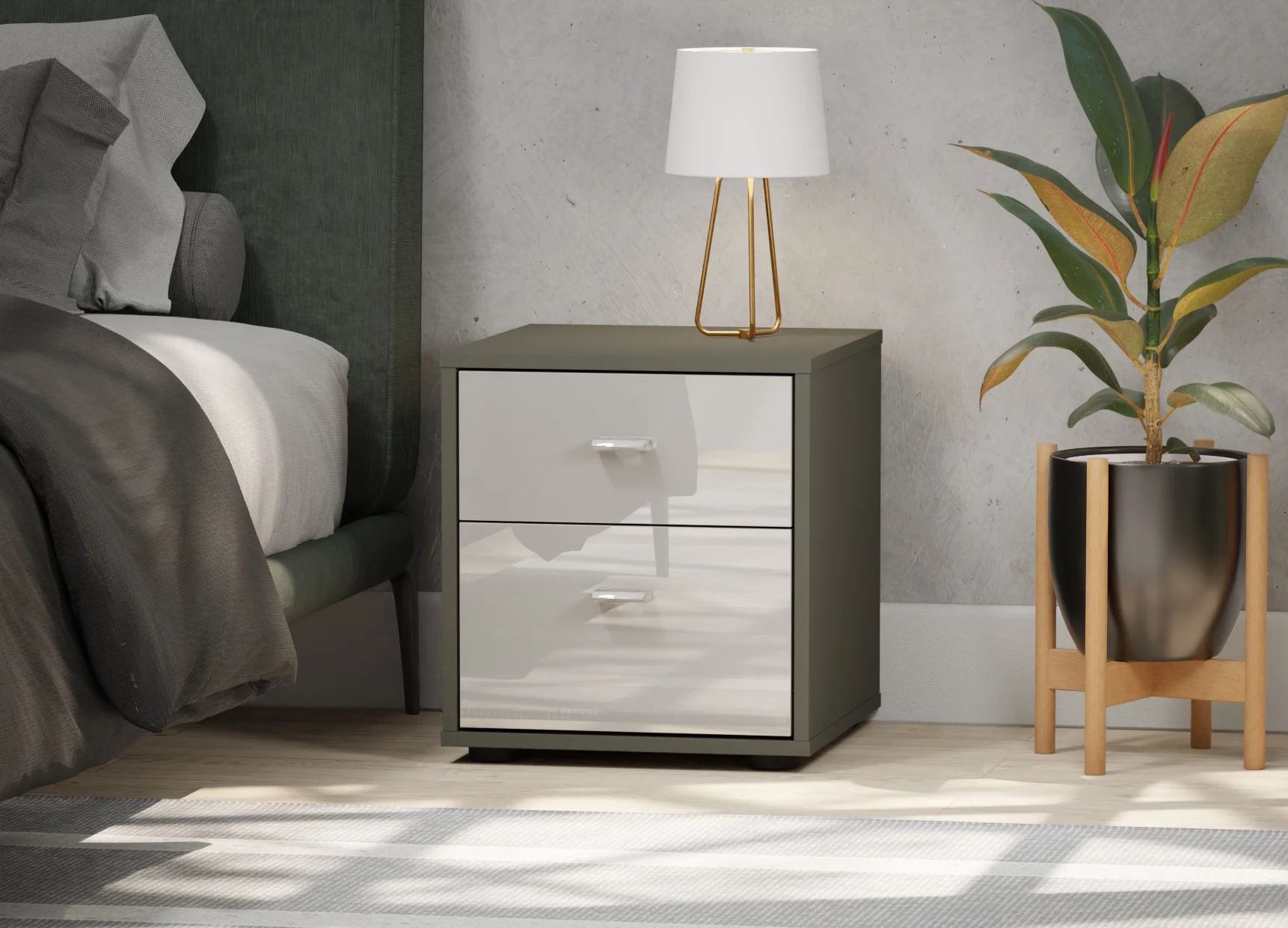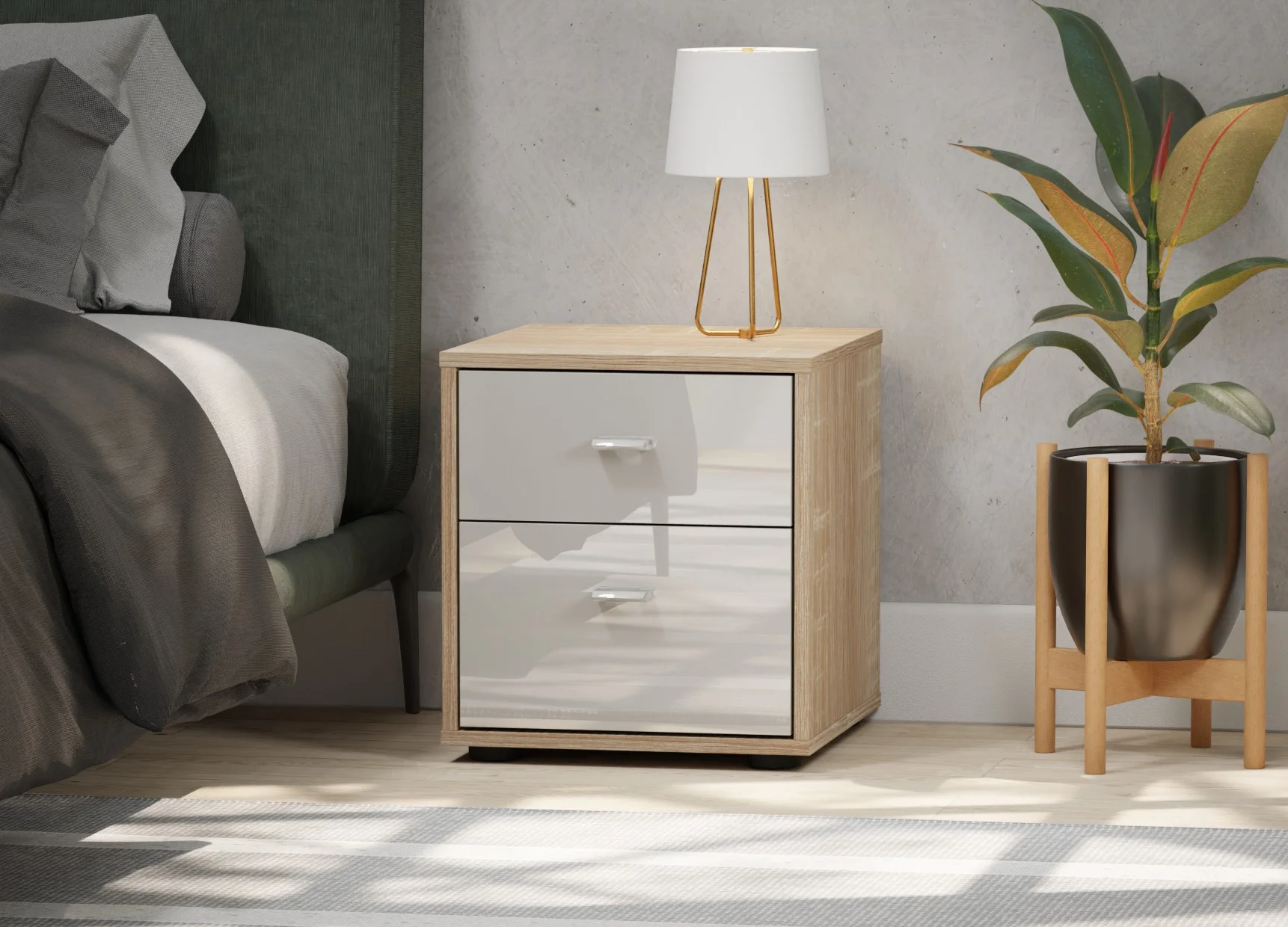 The Wiemann Tokio bedside table is a compact yet versatile storage piece designed to sit beautifully alongside modern wardrobes and beds. With its clean lines and two smooth-gliding drawers, it offers practical space for night-time essentials while keeping your bedroom calm and uncluttered. Part of Wiemann’s VIP collection, it features the brand’s signature silver-grey striped interior and is available in a wide choice of finishes, from light tones like white and champagne to deeper shades such as graphite and rustic oak. You can also choose matching matt fronts or refined glass options, along with silver, chrome, or slate handles to tailor the look to your space.