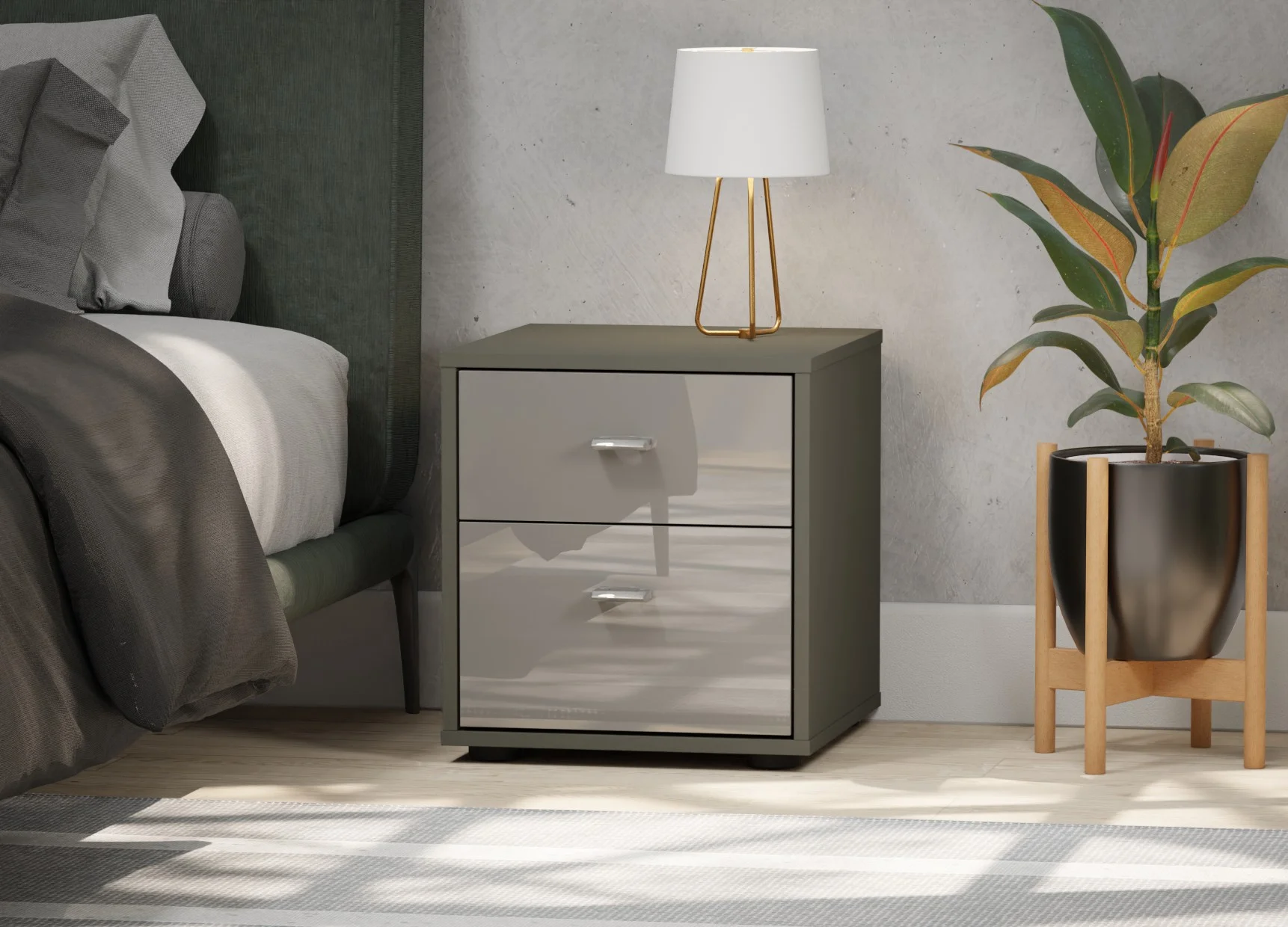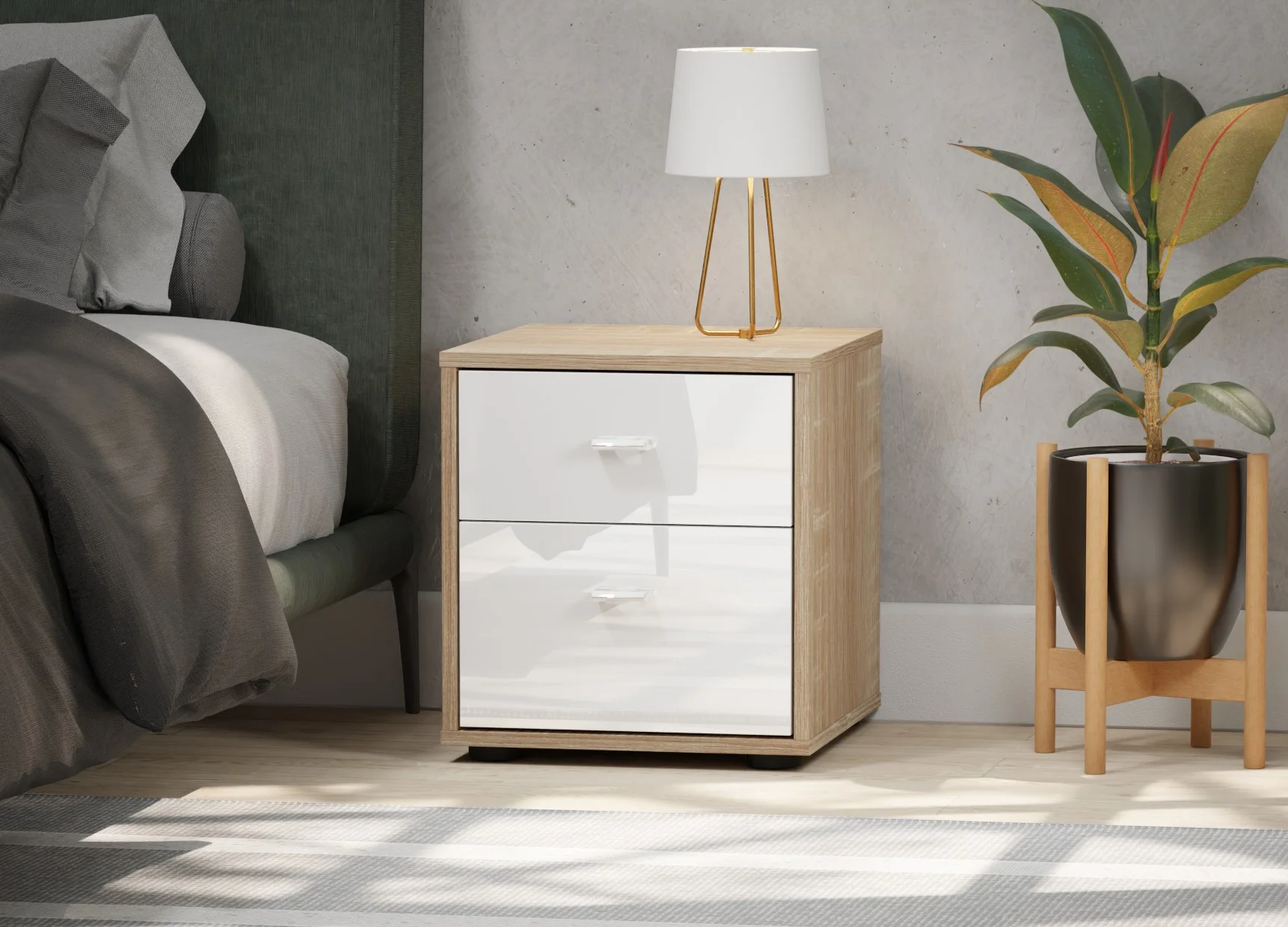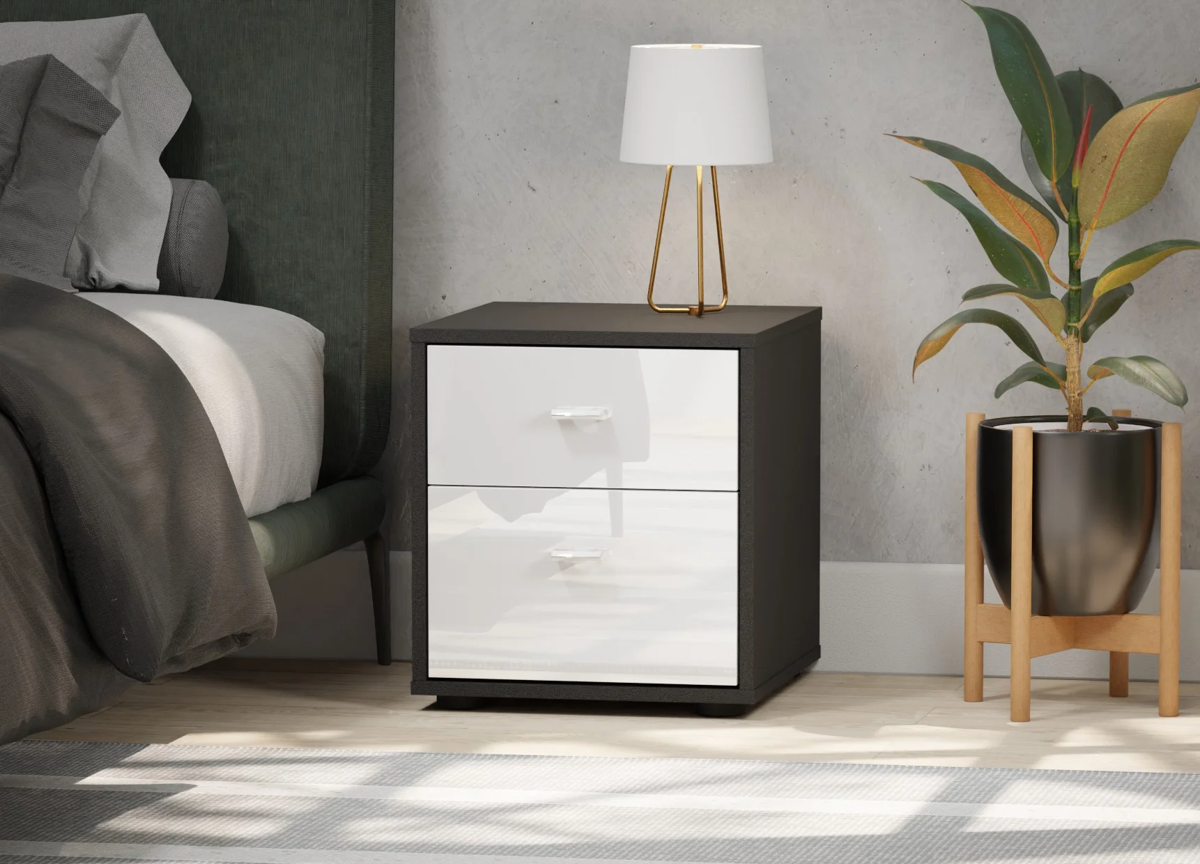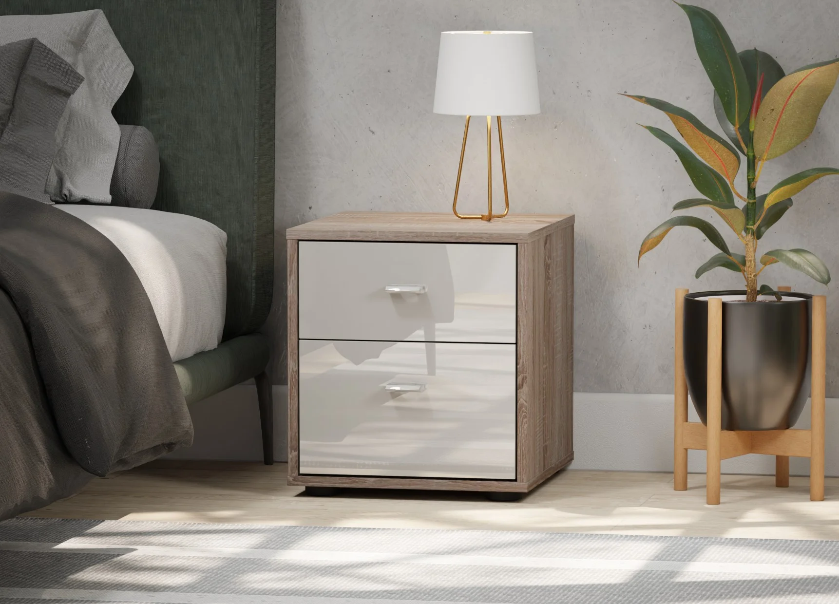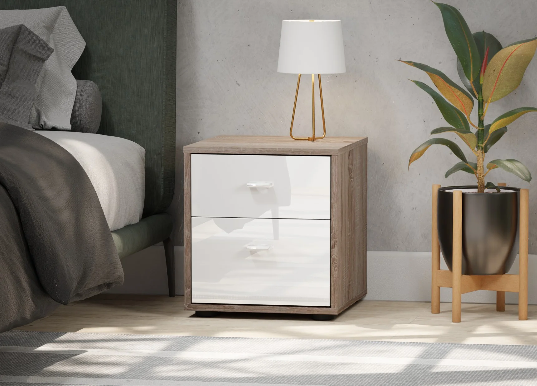 The Wiemann Tokio bedside table is a compact yet versatile storage piece designed to sit beautifully alongside modern wardrobes and beds. With its clean lines and two smooth-gliding drawers, it offers practical space for night-time essentials while keeping your bedroom calm and uncluttered. Part of Wiemann’s VIP collection, it features the brand’s signature silver-grey striped interior and is available in a wide choice of finishes, from light tones like white and champagne to deeper shades such as graphite and rustic oak. You can also choose matching matt fronts or refined glass options, along with silver, chrome, or slate handles to tailor the look to your space.