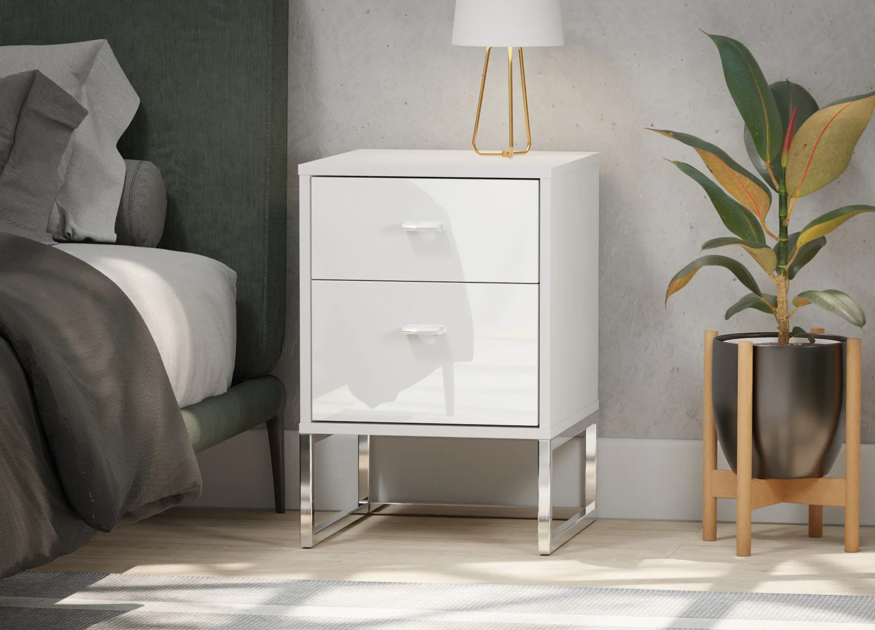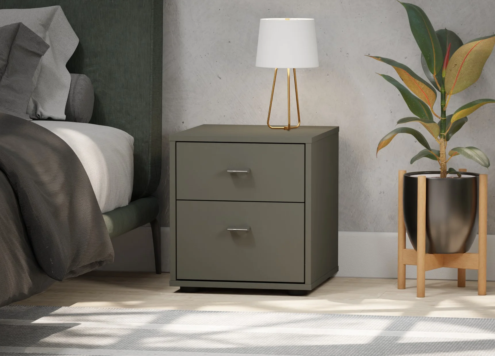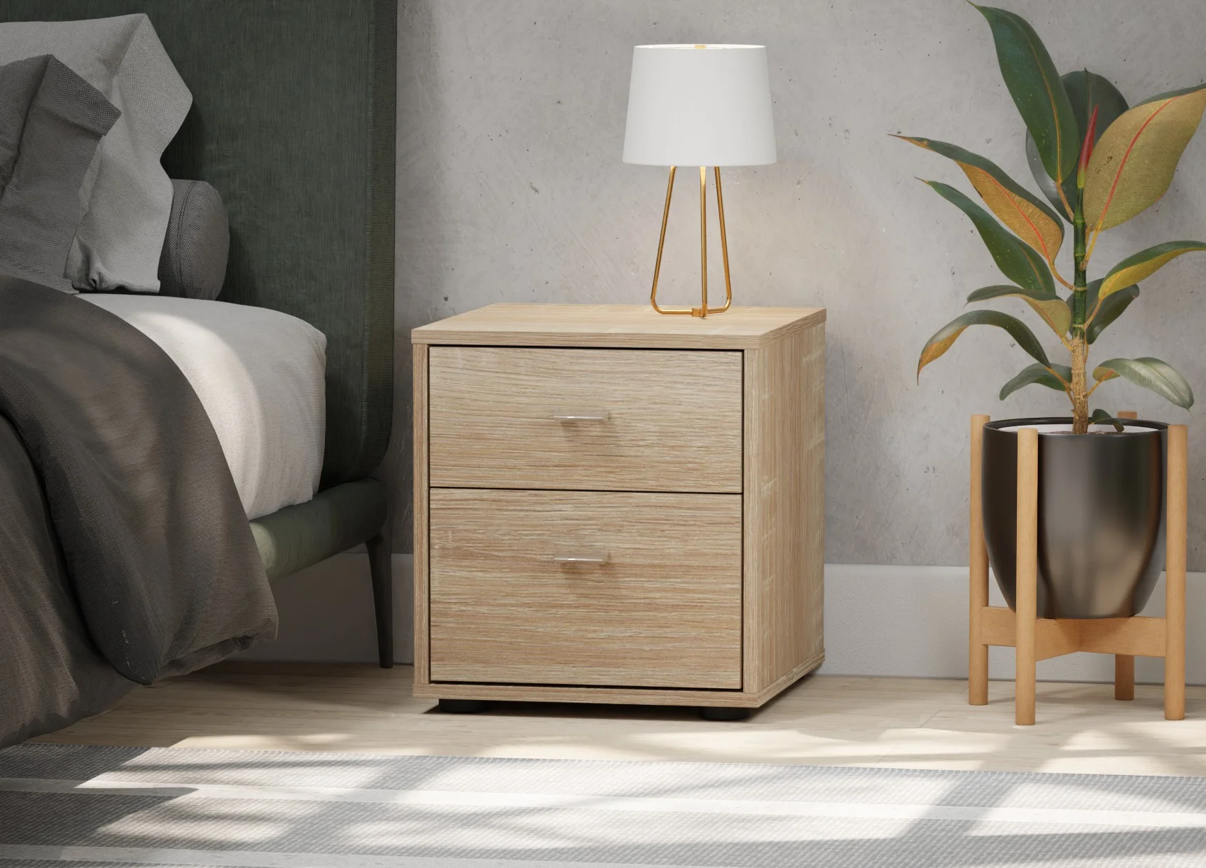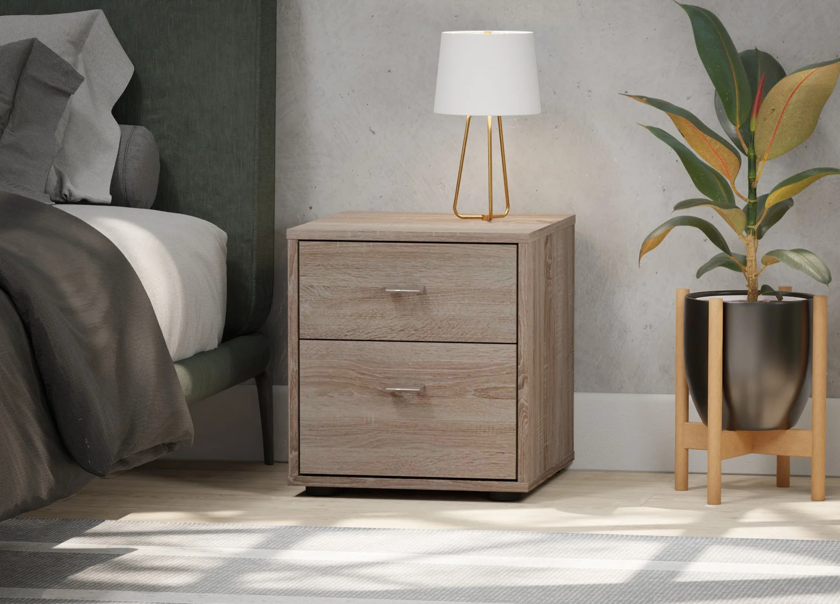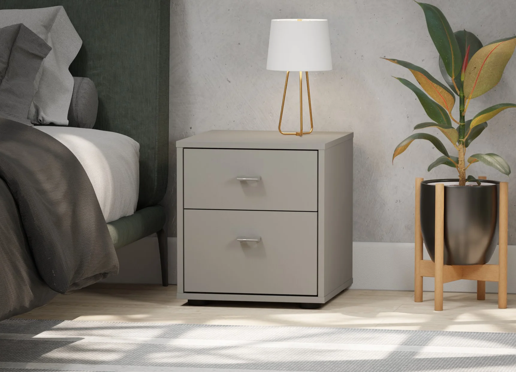 The Wiemann Tokio bedside table is a compact yet versatile storage piece designed to sit beautifully alongside modern wardrobes and beds. With its clean lines and two smooth-gliding drawers, it offers practical space for night-time essentials while keeping your bedroom calm and uncluttered. Part of Wiemann’s VIP collection, it features the brand’s signature silver-grey striped interior and is available in a wide choice of finishes, from light tones like white and champagne to deeper shades such as graphite and rustic oak. You can also choose matching matt fronts or refined glass options, along with silver, chrome, or slate handles to tailor the look to your space.