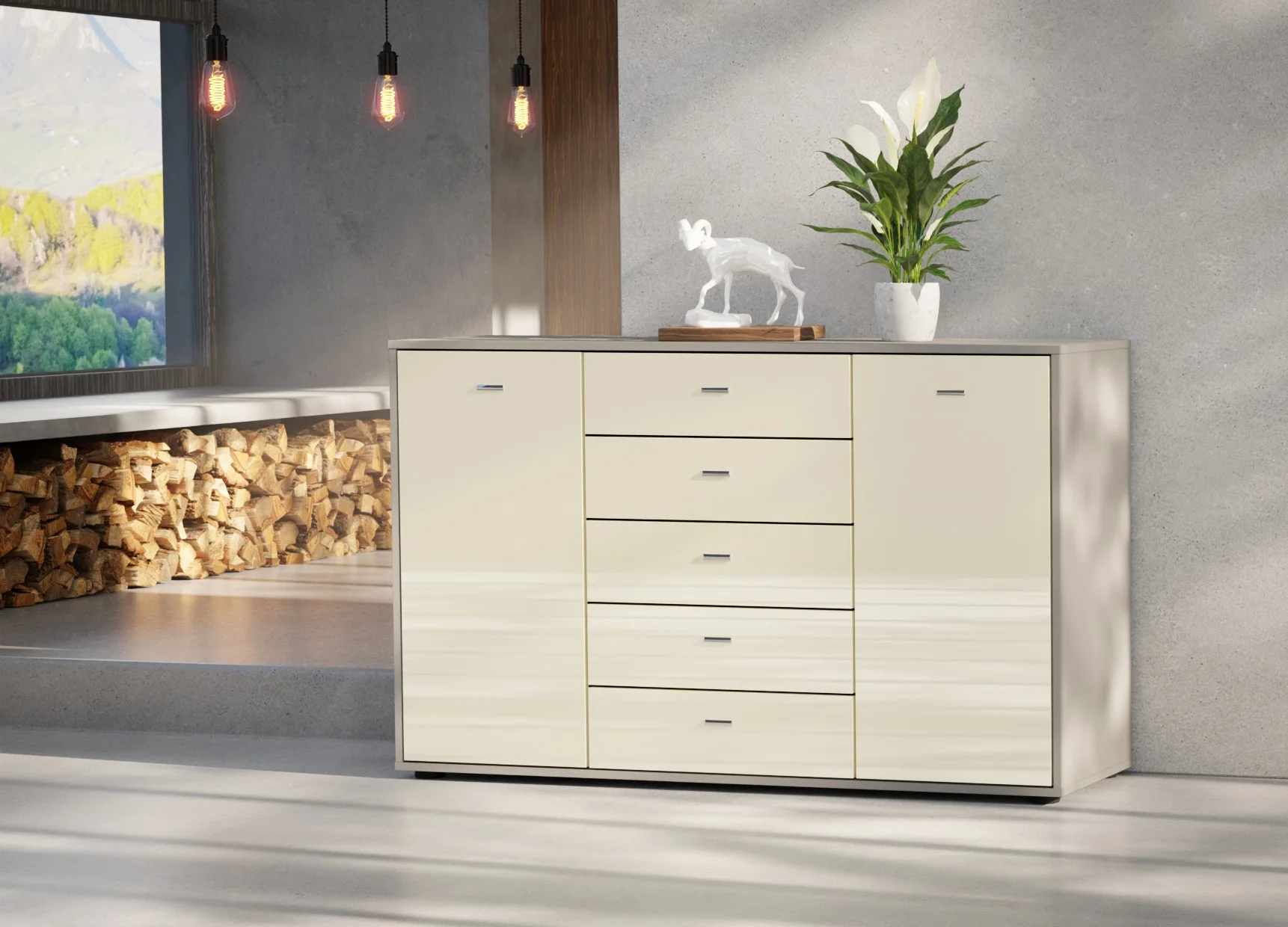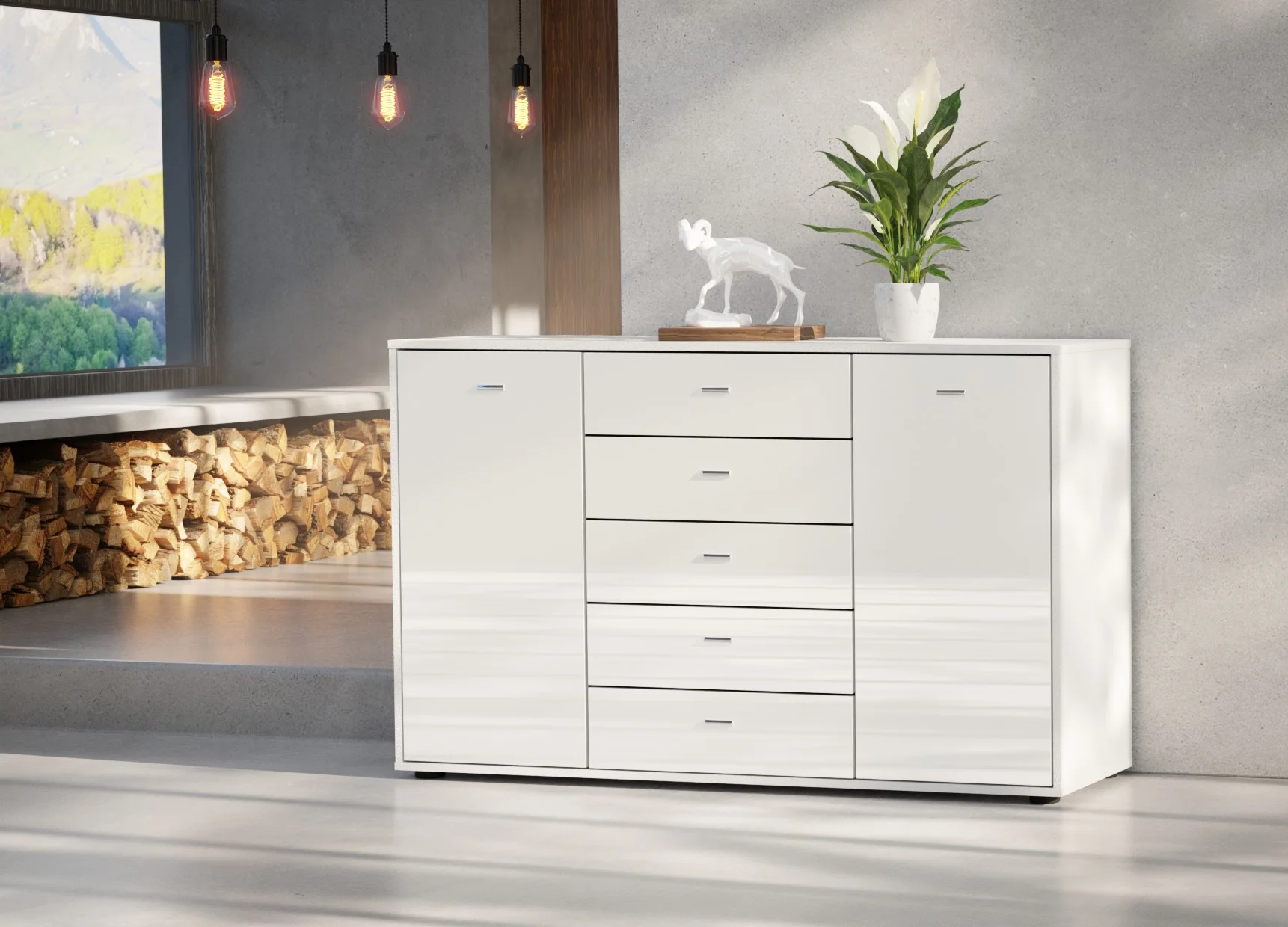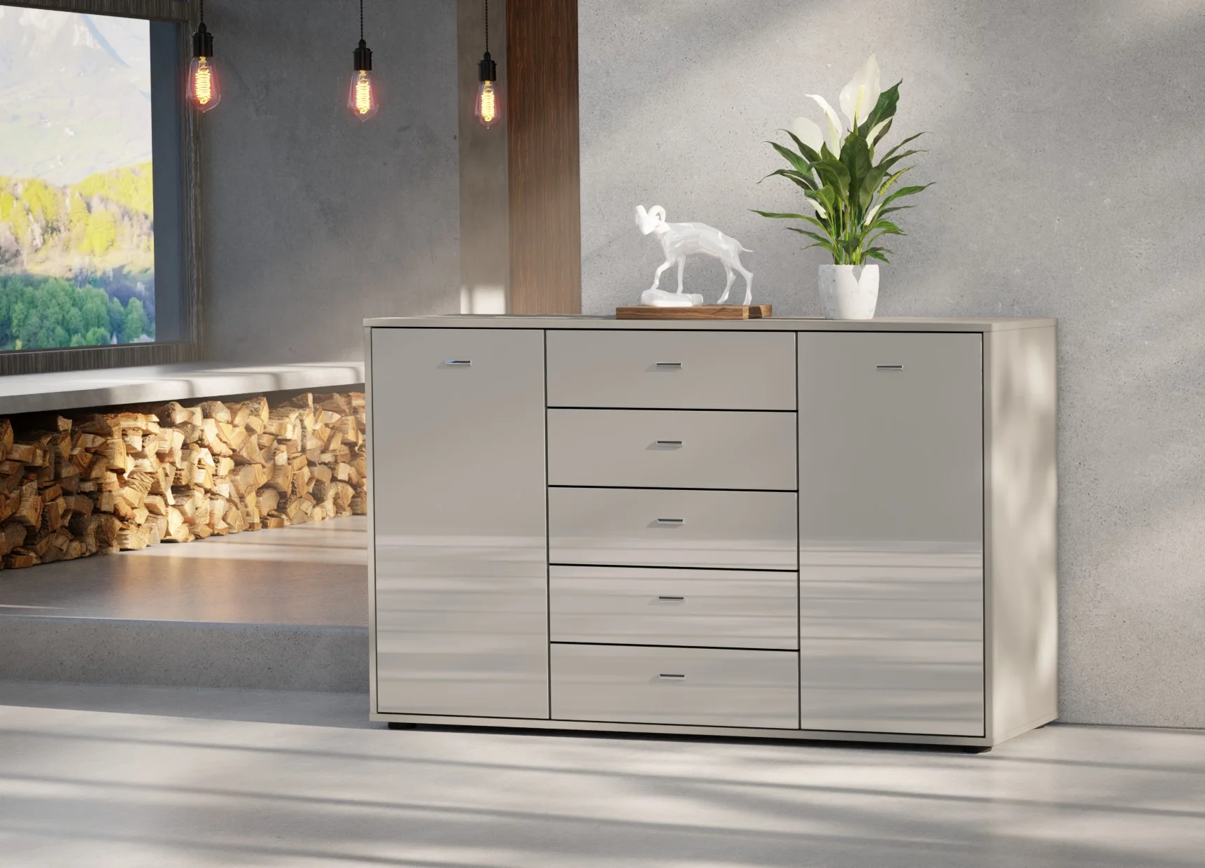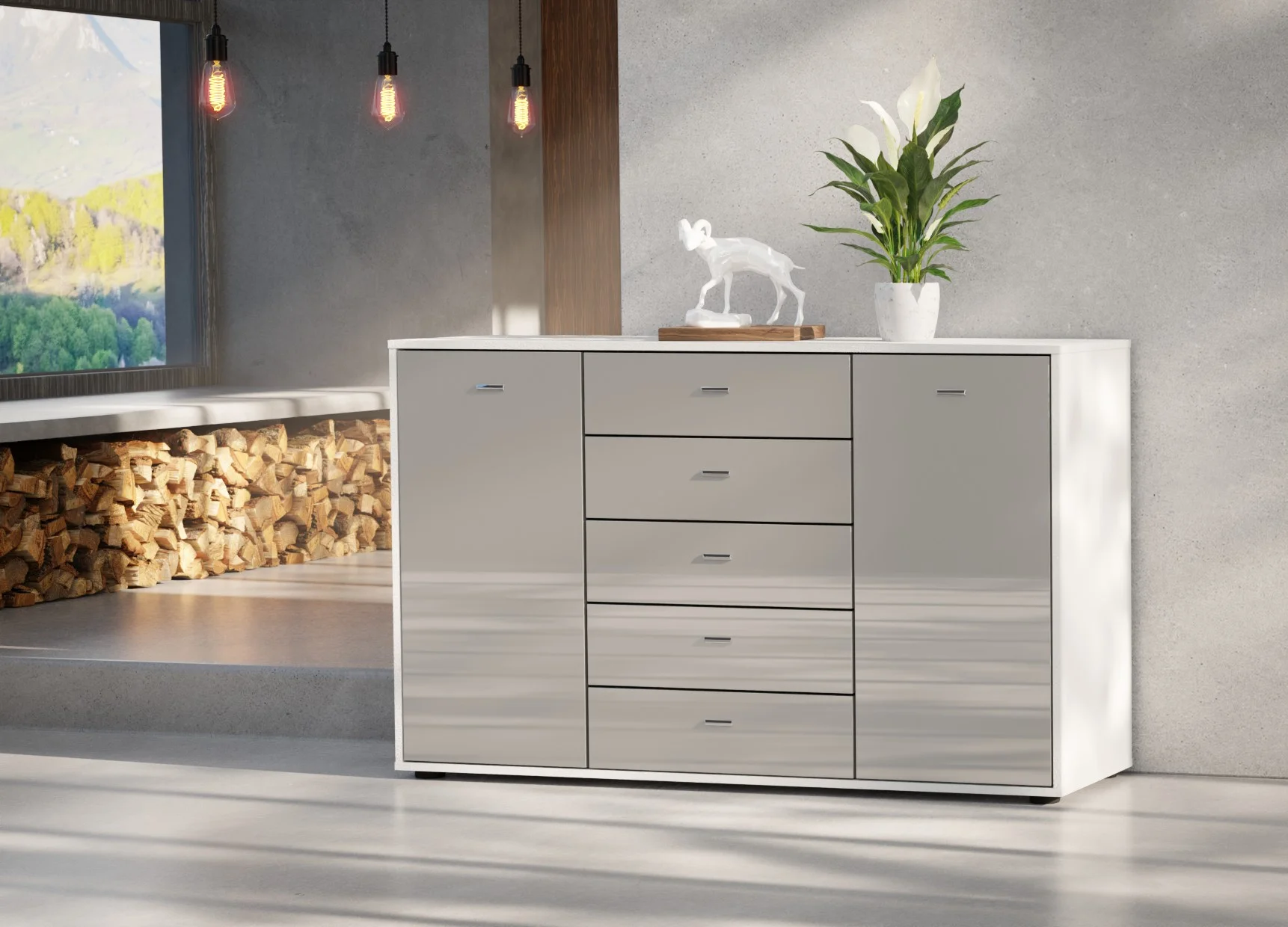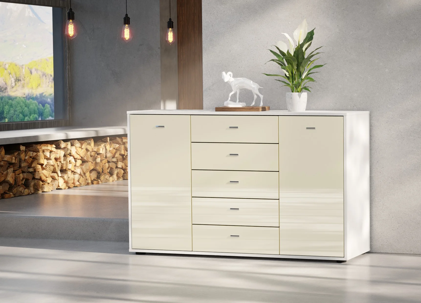 Measuring 141cm in width, this chest works beautifully in modern bedrooms where flexibility matters. Soft-close drawers and doors ensure smooth, quiet use, while the unit arrives fully assembled for immediate enjoyment. One of the standout features of the Tokio range is its customisation potential—mix and match carcass colours with glass or matt fronts to create a truly personal piece, with up to 45 finish combinations available. Crafted in Germany using premium materials, this chest delivers long-lasting quality with a clean, contemporary feel.