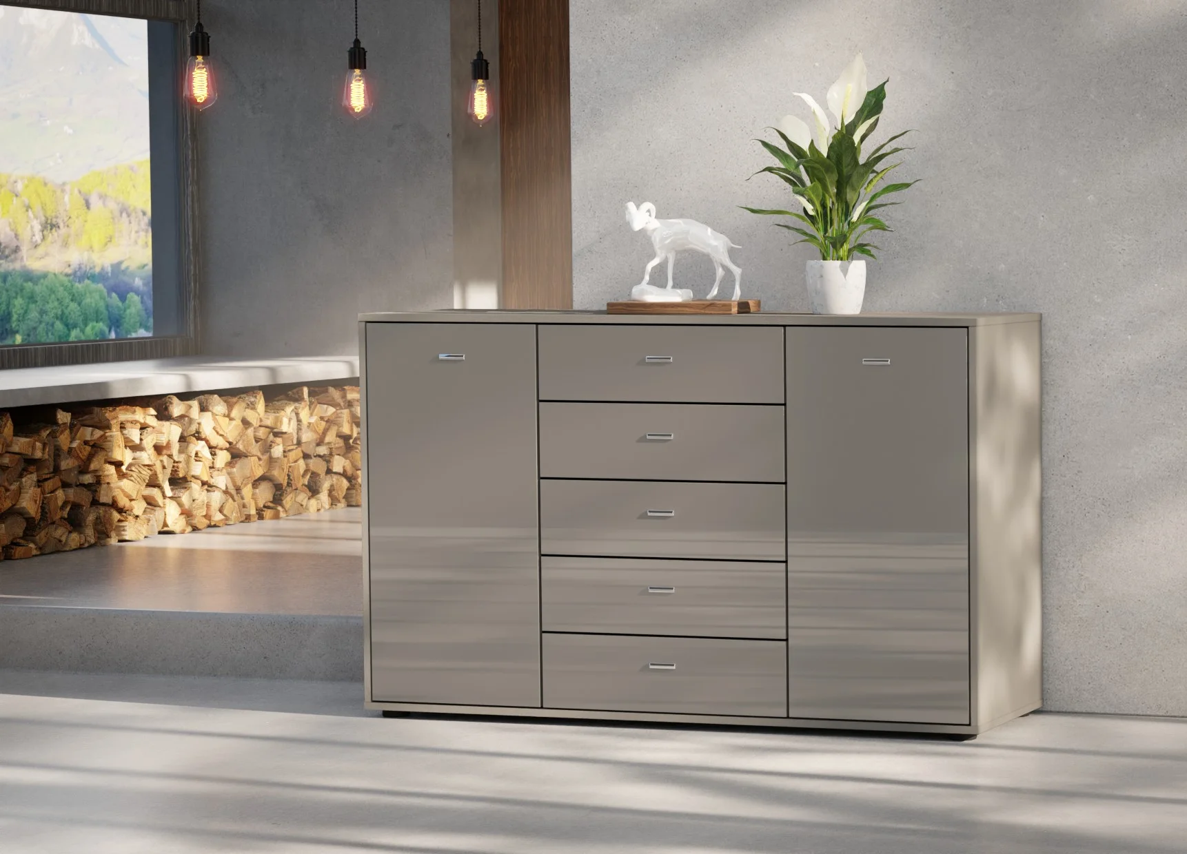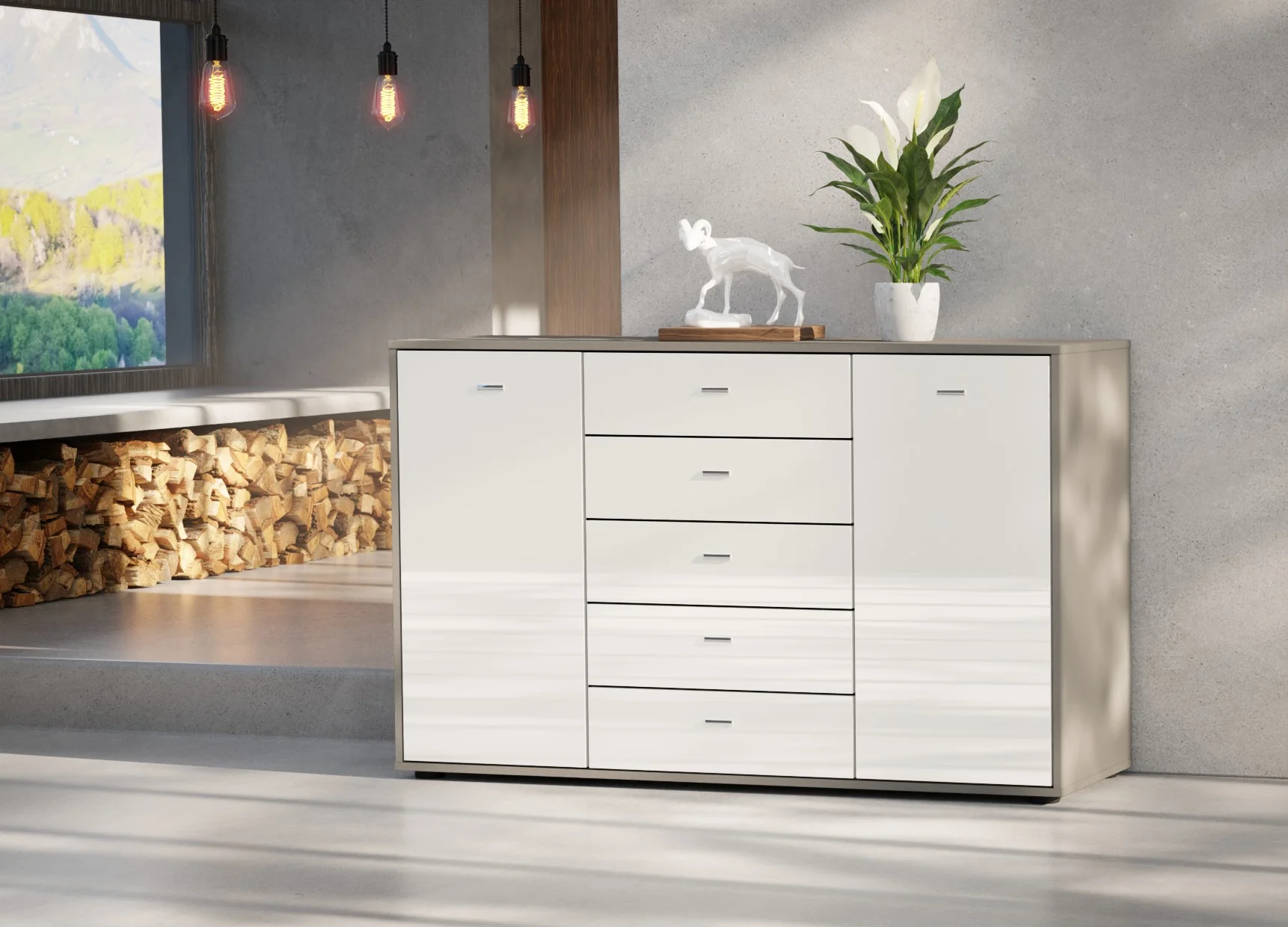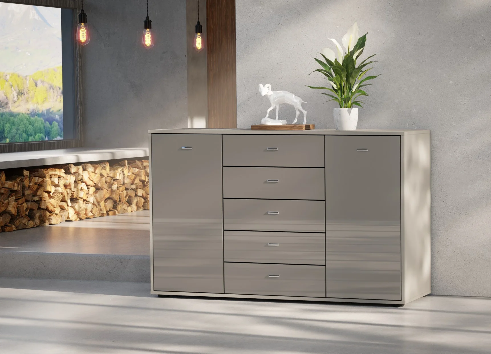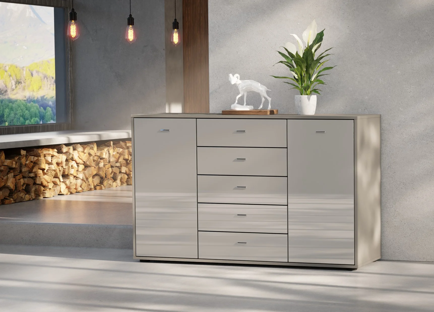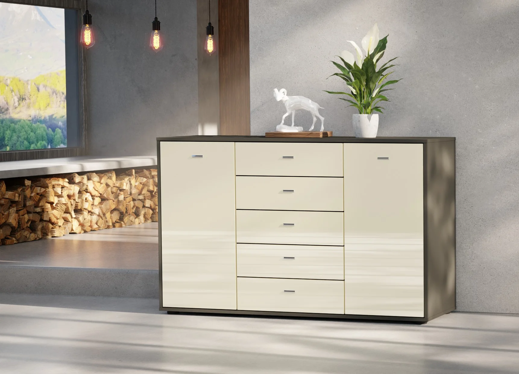 Measuring 141cm in width, this chest works beautifully in modern bedrooms where flexibility matters. Soft-close drawers and doors ensure smooth, quiet use, while the unit arrives fully assembled for immediate enjoyment. One of the standout features of the Tokio range is its customisation potential—mix and match carcass colours with glass or matt fronts to create a truly personal piece, with up to 45 finish combinations available. Crafted in Germany using premium materials, this chest delivers long-lasting quality with a clean, contemporary feel.
