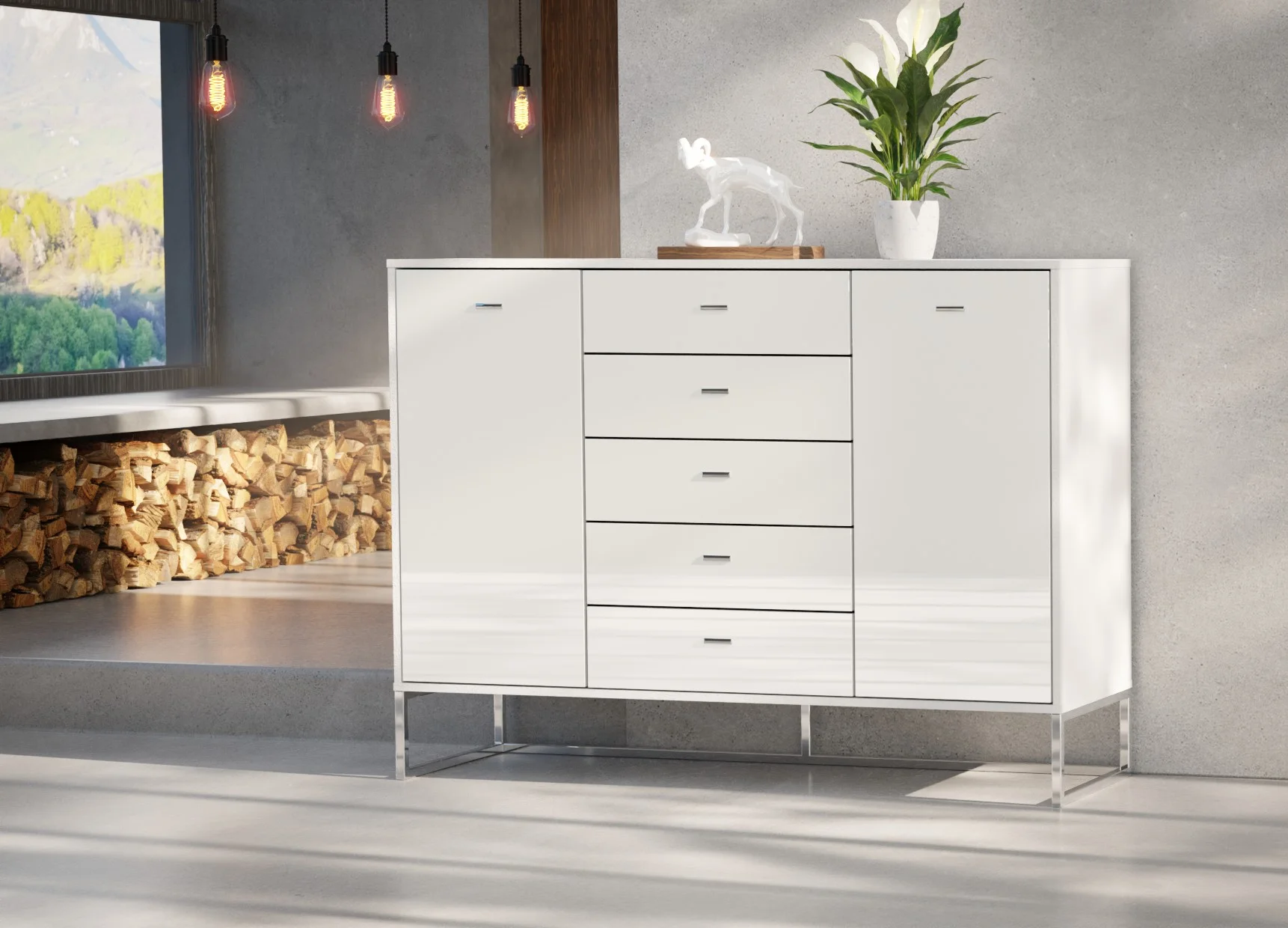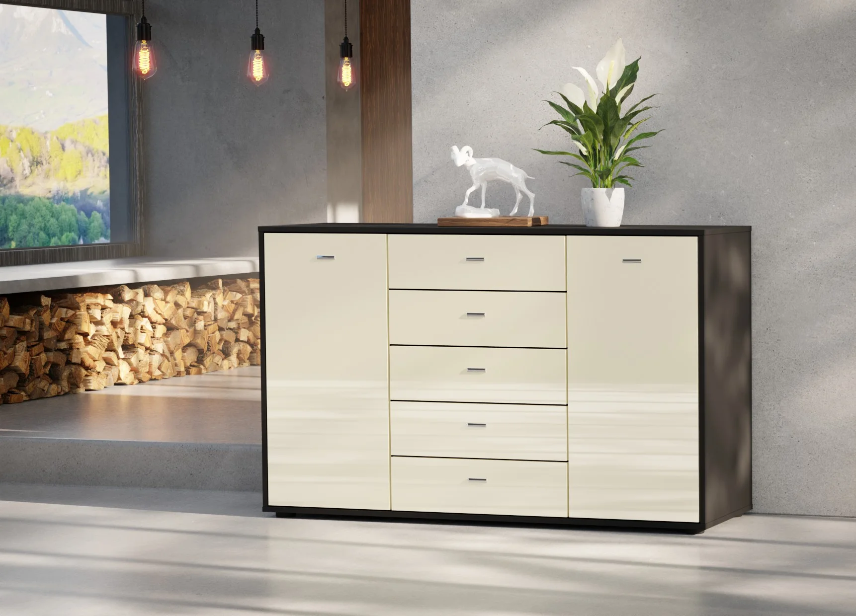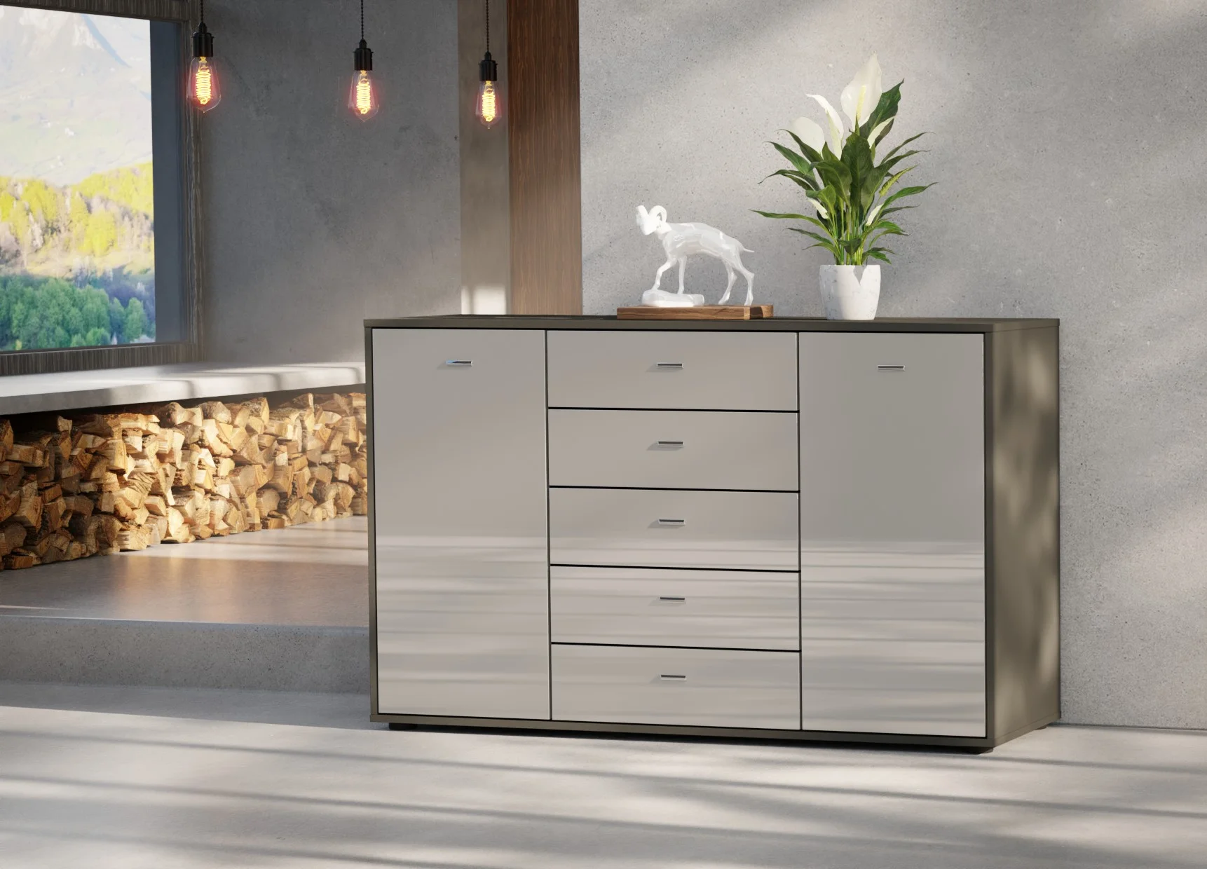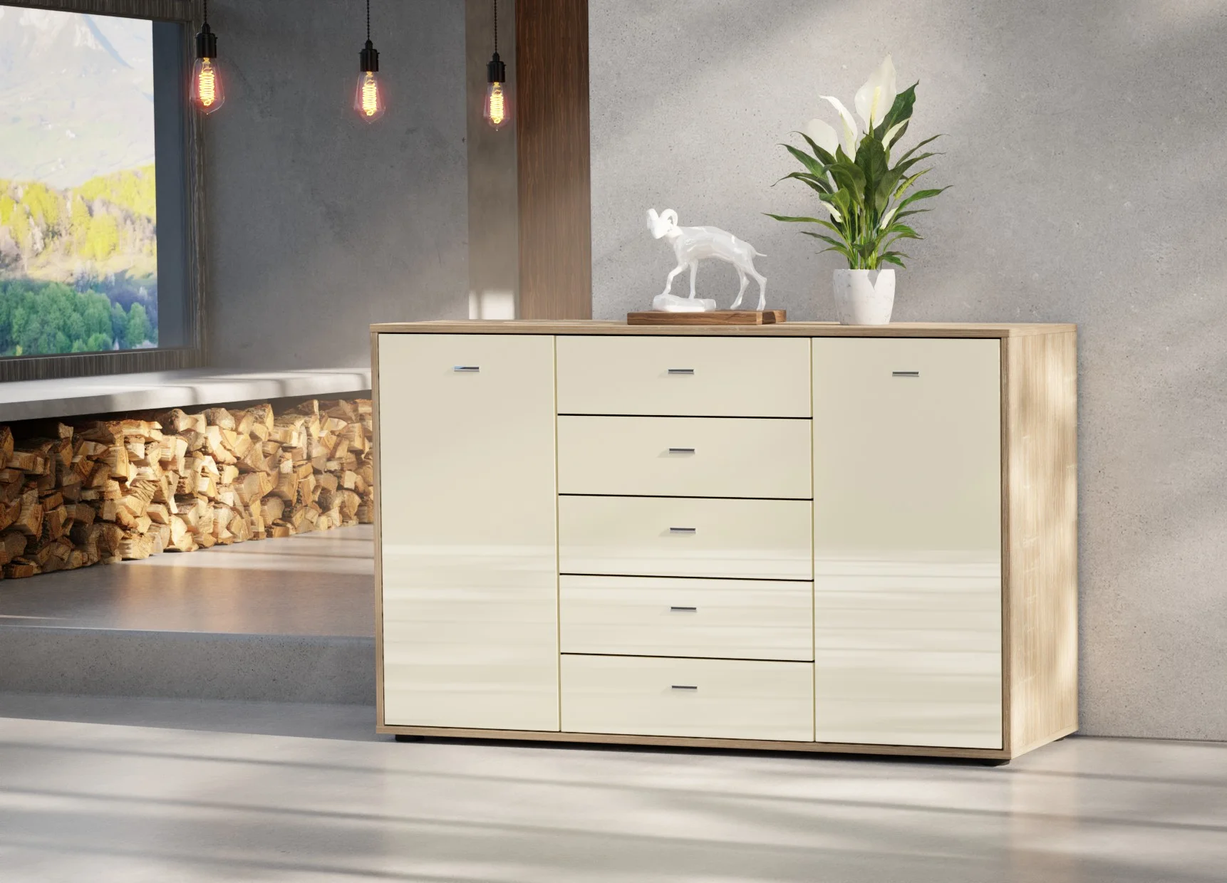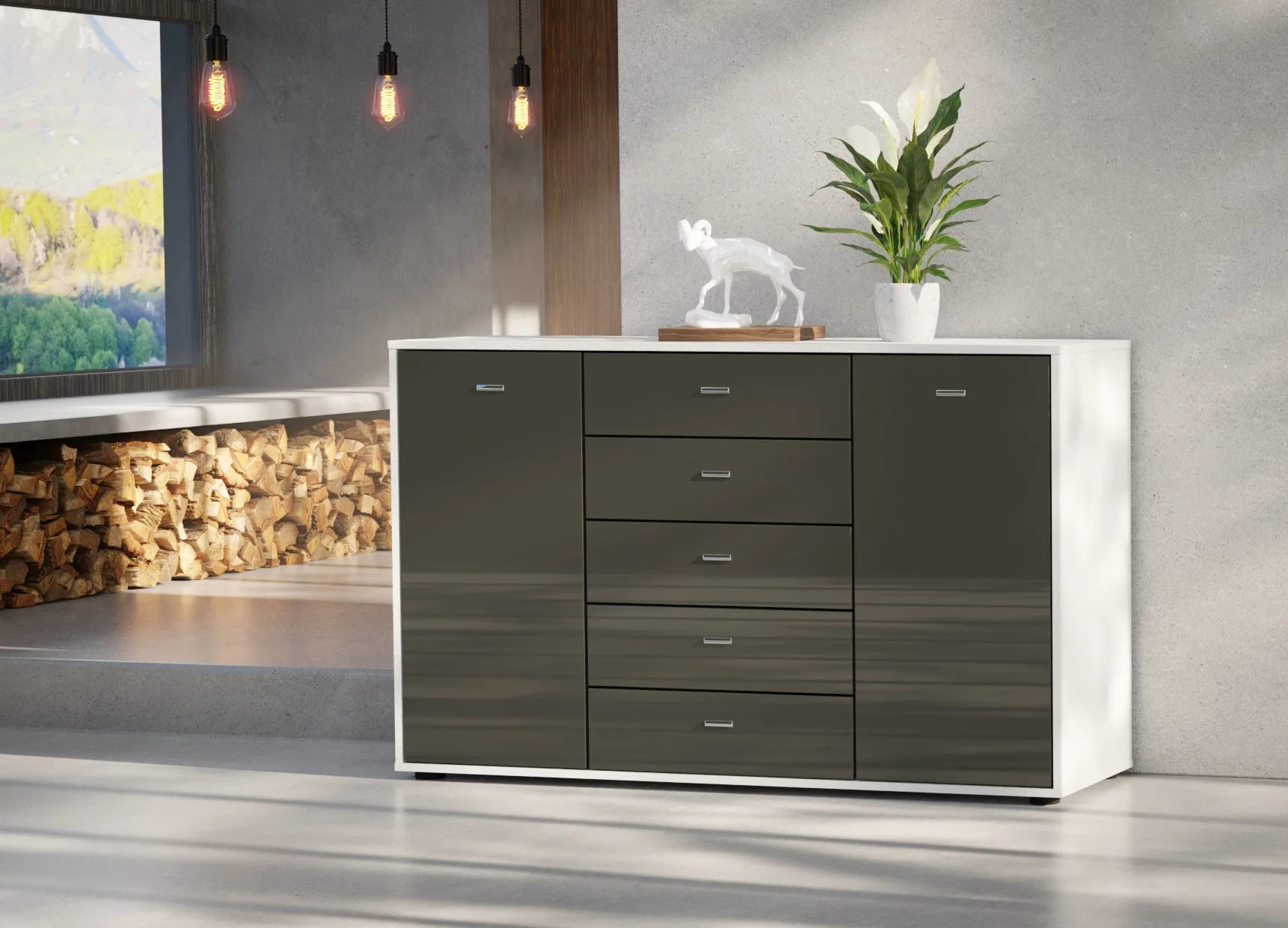 Measuring 141cm in width, this chest works beautifully in modern bedrooms where flexibility matters. Soft-close drawers and doors ensure smooth, quiet use, while the unit arrives fully assembled for immediate enjoyment. One of the standout features of the Tokio range is its customisation potential—mix and match carcass colours with glass or matt fronts to create a truly personal piece, with up to 45 finish combinations available. Crafted in Germany using premium materials, this chest delivers long-lasting quality with a clean, contemporary feel.
