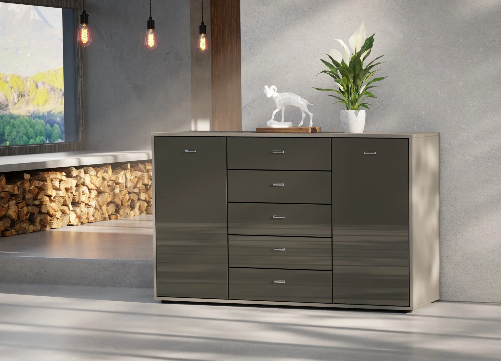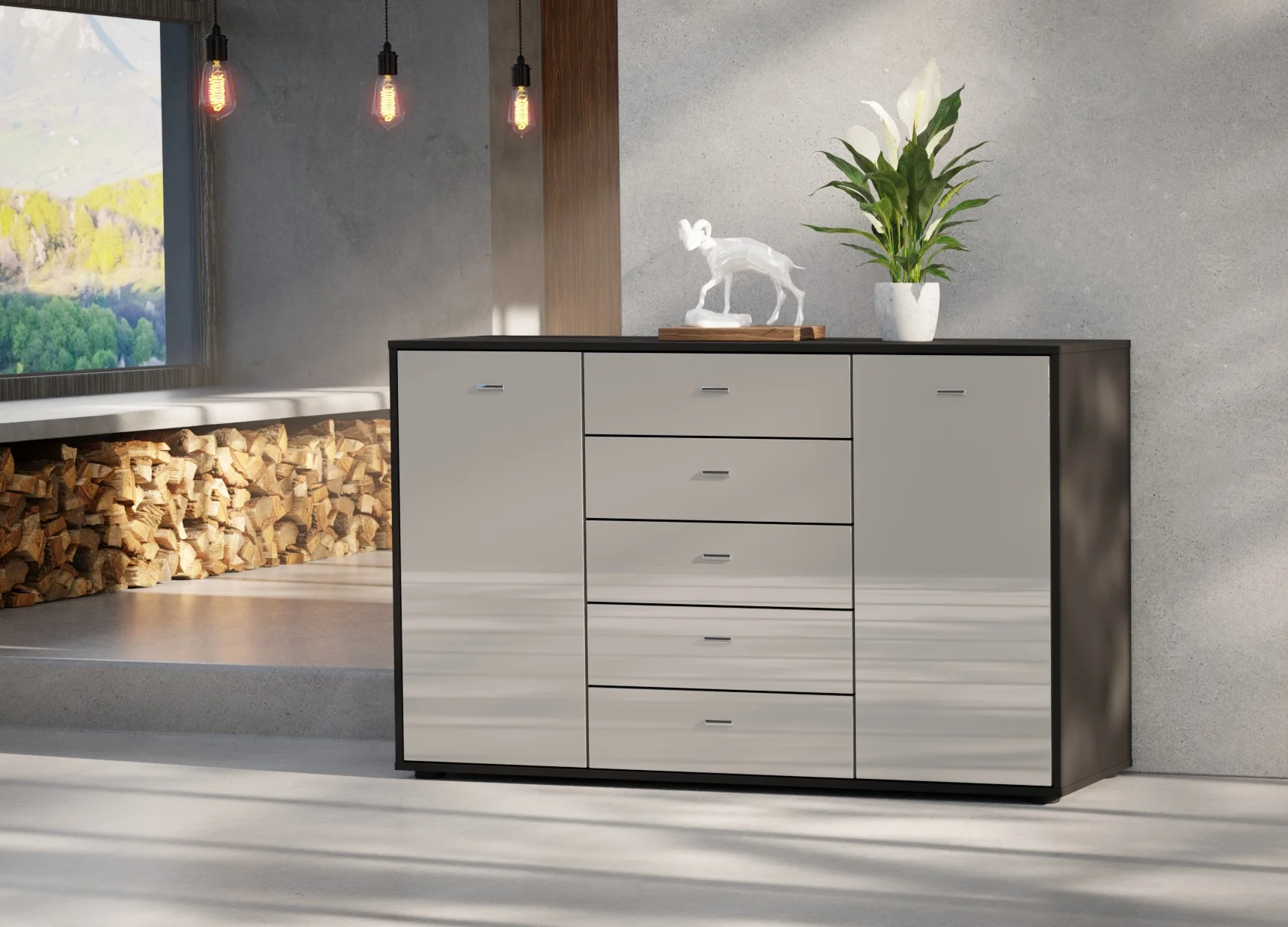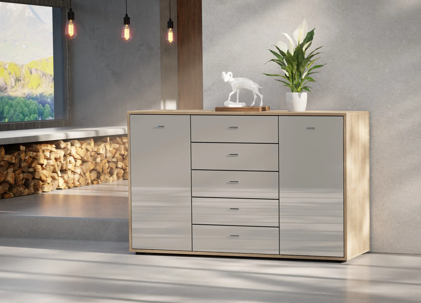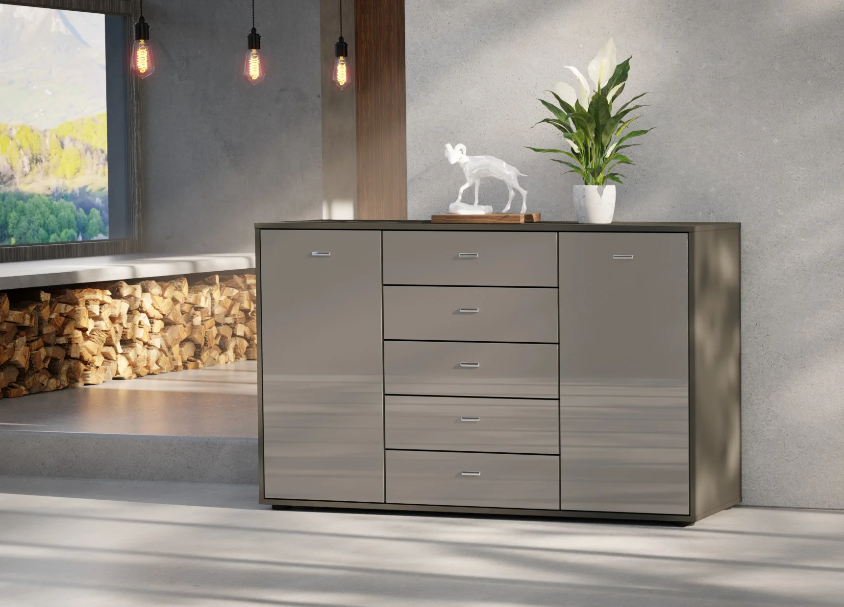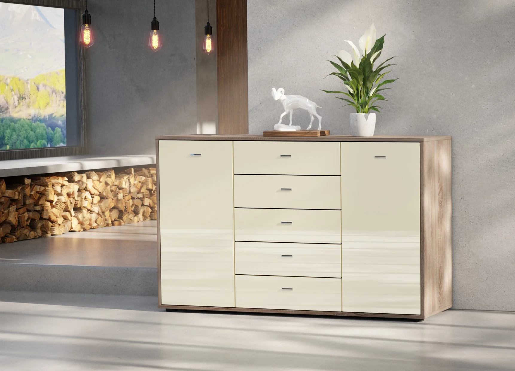 Measuring 141cm in width, this chest works beautifully in modern bedrooms where flexibility matters. Soft-close drawers and doors ensure smooth, quiet use, while the unit arrives fully assembled for immediate enjoyment. One of the standout features of the Tokio range is its customisation potential—mix and match carcass colours with glass or matt fronts to create a truly personal piece, with up to 45 finish combinations available. Crafted in Germany using premium materials, this chest delivers long-lasting quality with a clean, contemporary feel.