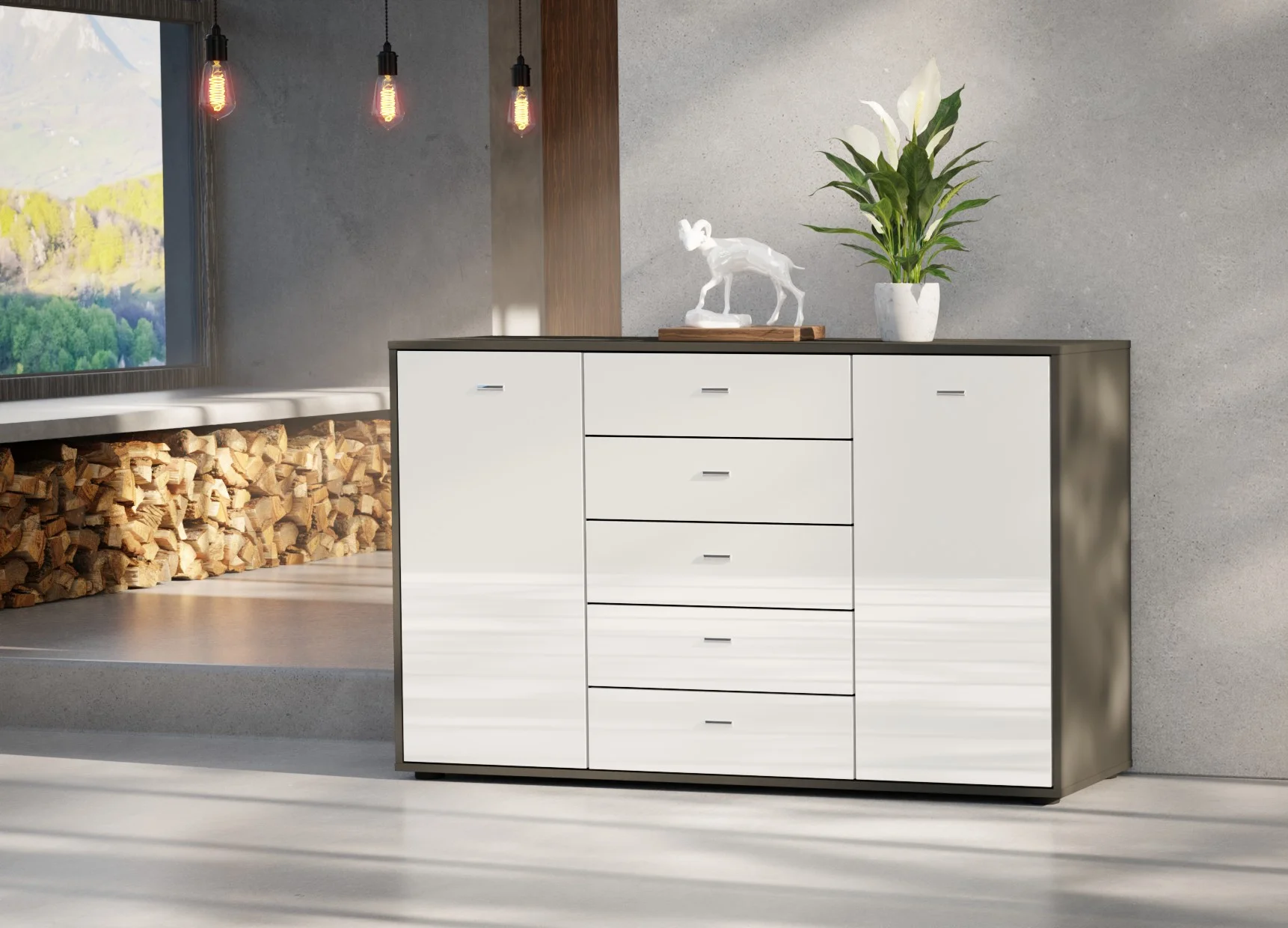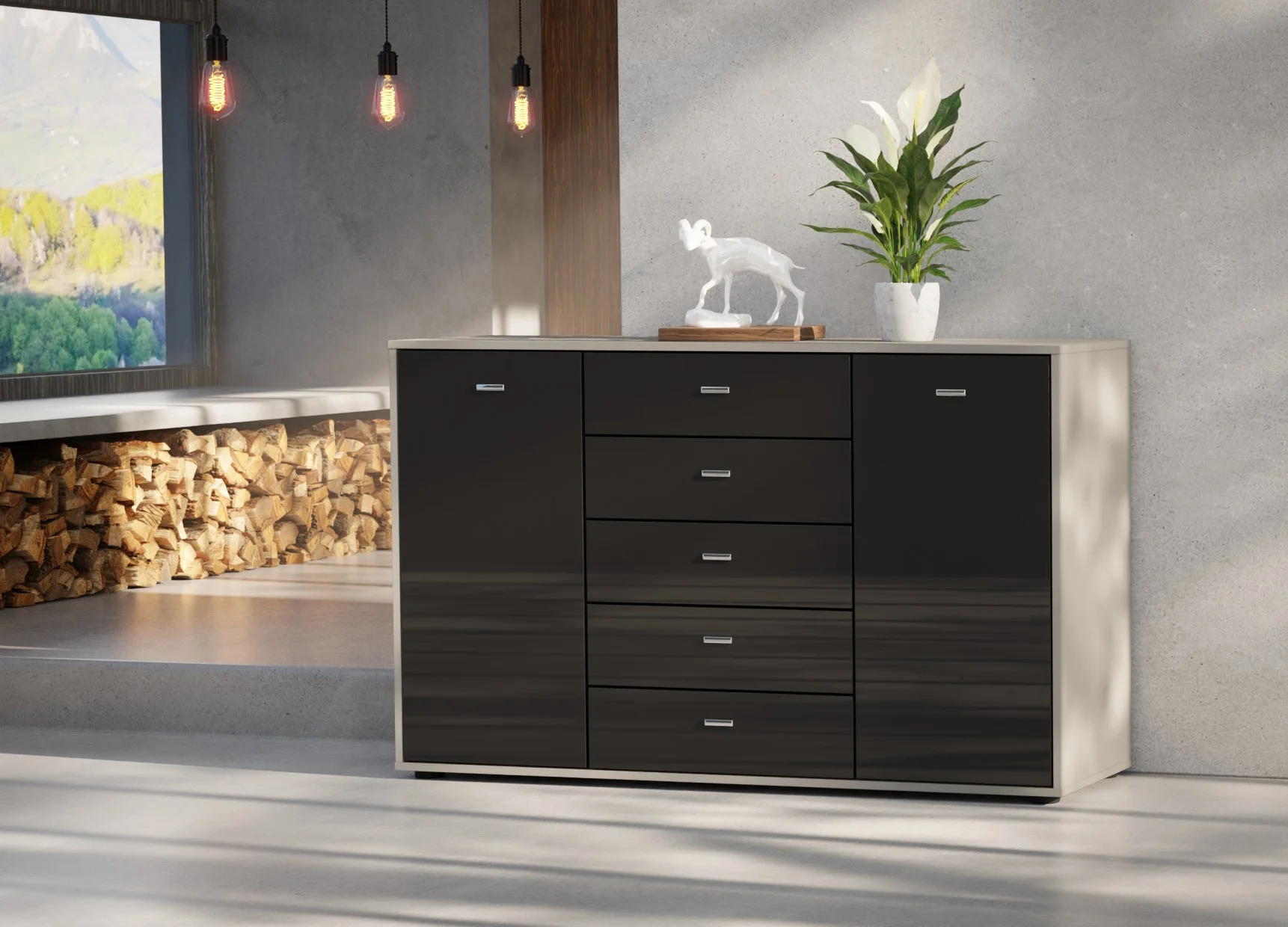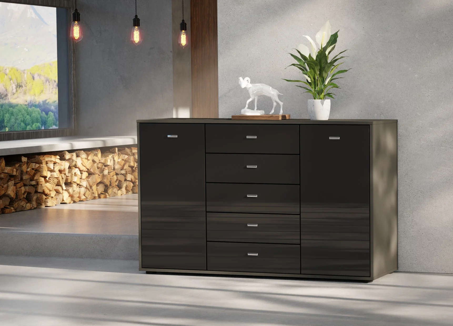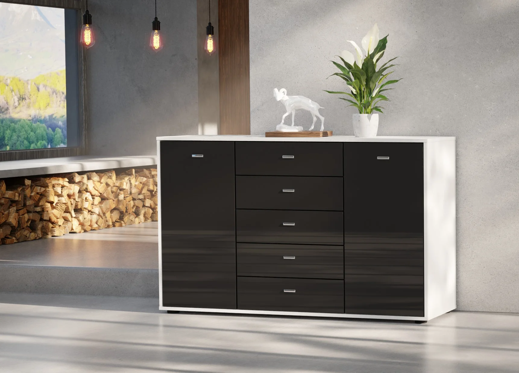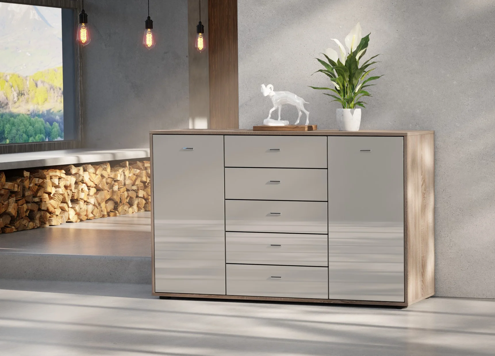 Measuring 141cm in width, this chest works beautifully in modern bedrooms where flexibility matters. Soft-close drawers and doors ensure smooth, quiet use, while the unit arrives fully assembled for immediate enjoyment. One of the standout features of the Tokio range is its customisation potential—mix and match carcass colours with glass or matt fronts to create a truly personal piece, with up to 45 finish combinations available. Crafted in Germany using premium materials, this chest delivers long-lasting quality with a clean, contemporary feel.
