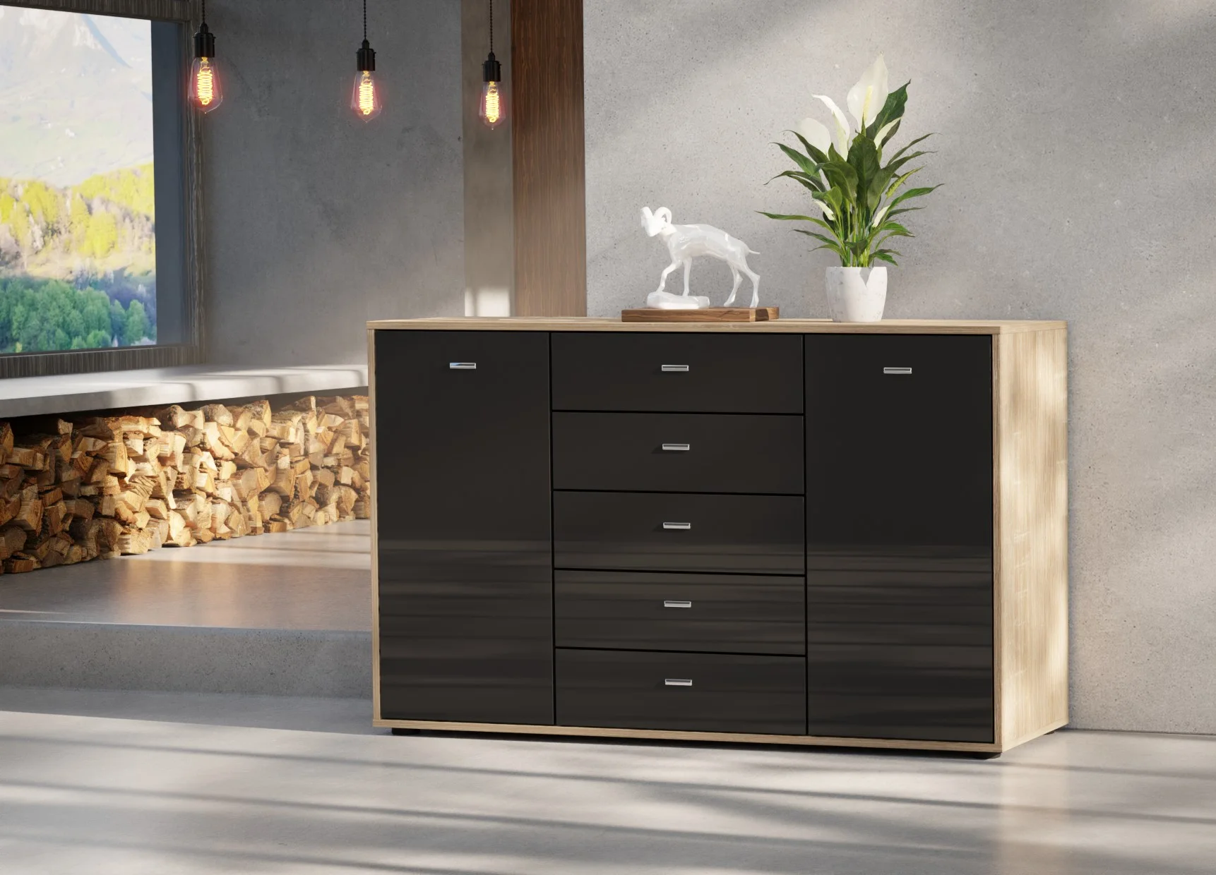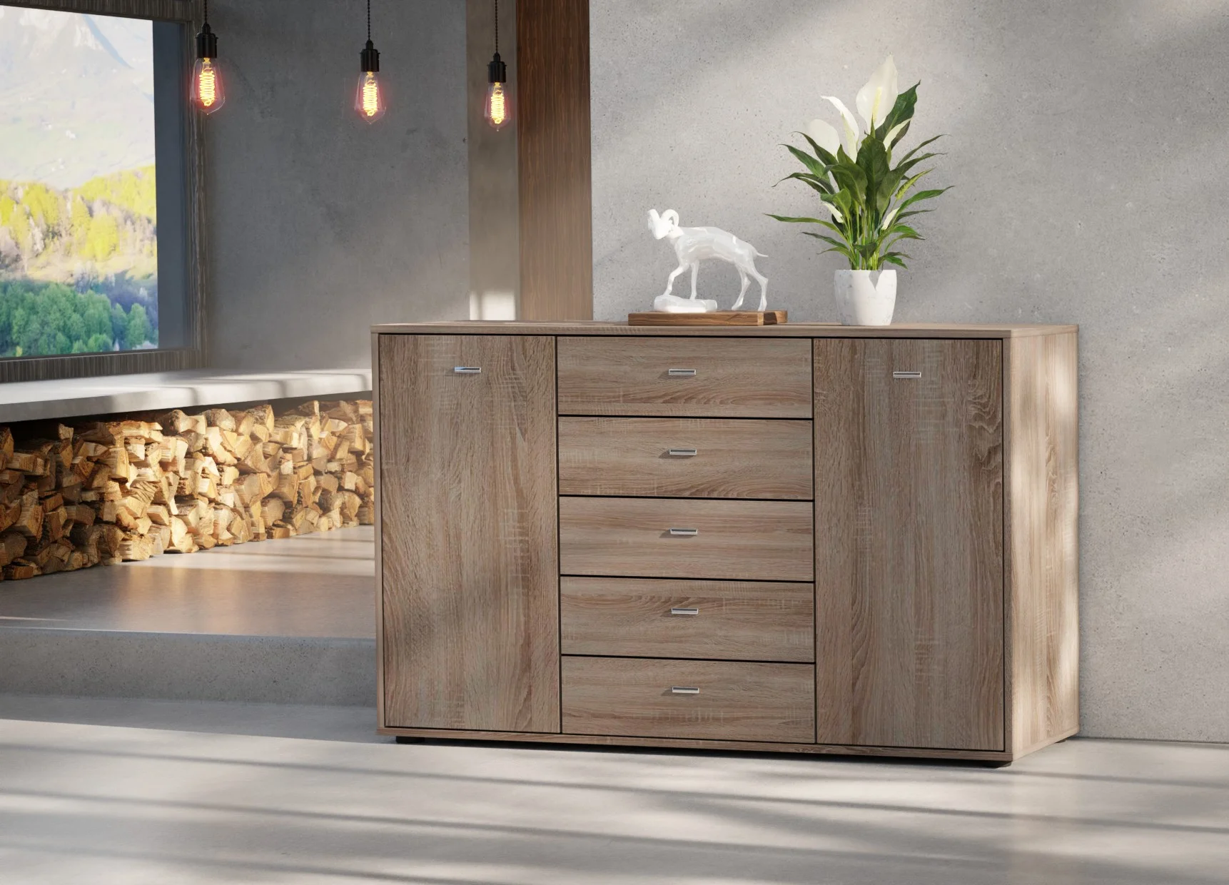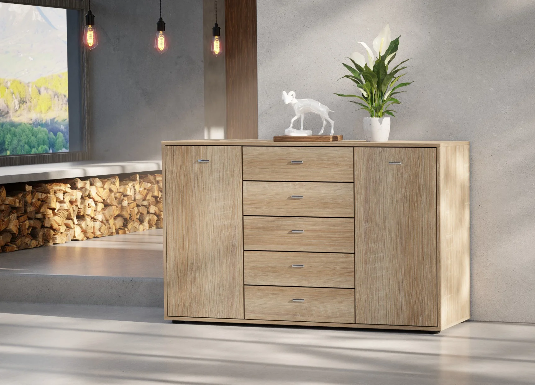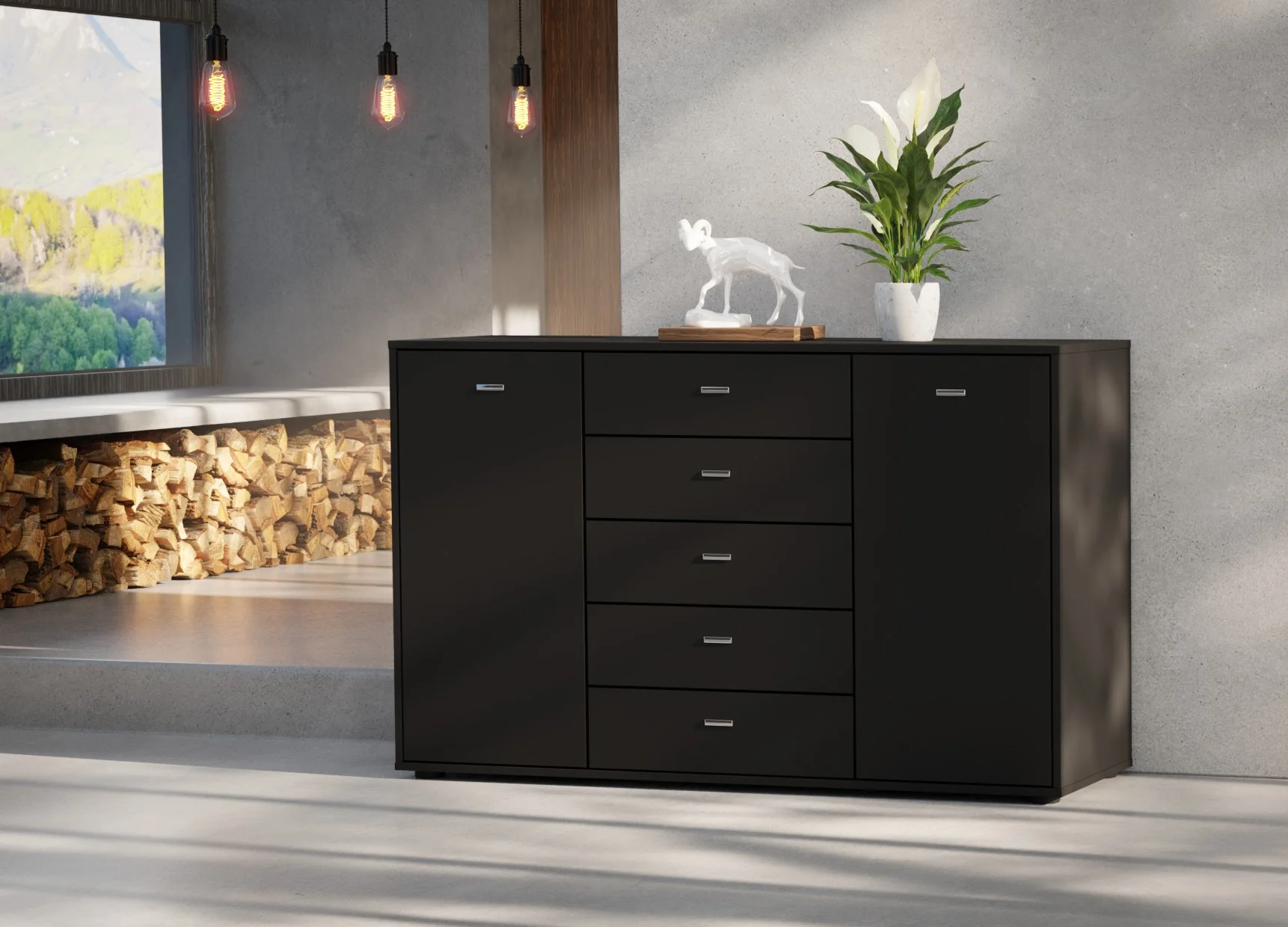 The Wiemann Tokio 5 Drawer 2 Door Chest is designed for those who want generous storage with a more versatile layout. With two hinged cupboards positioned on each side (with 1 shelf behind each) and five drawers neatly arranged in the centre, it offers a practical mix of concealed and easy-access storage within a wide, balanced design.