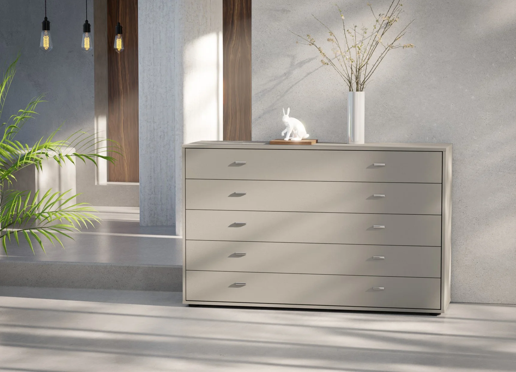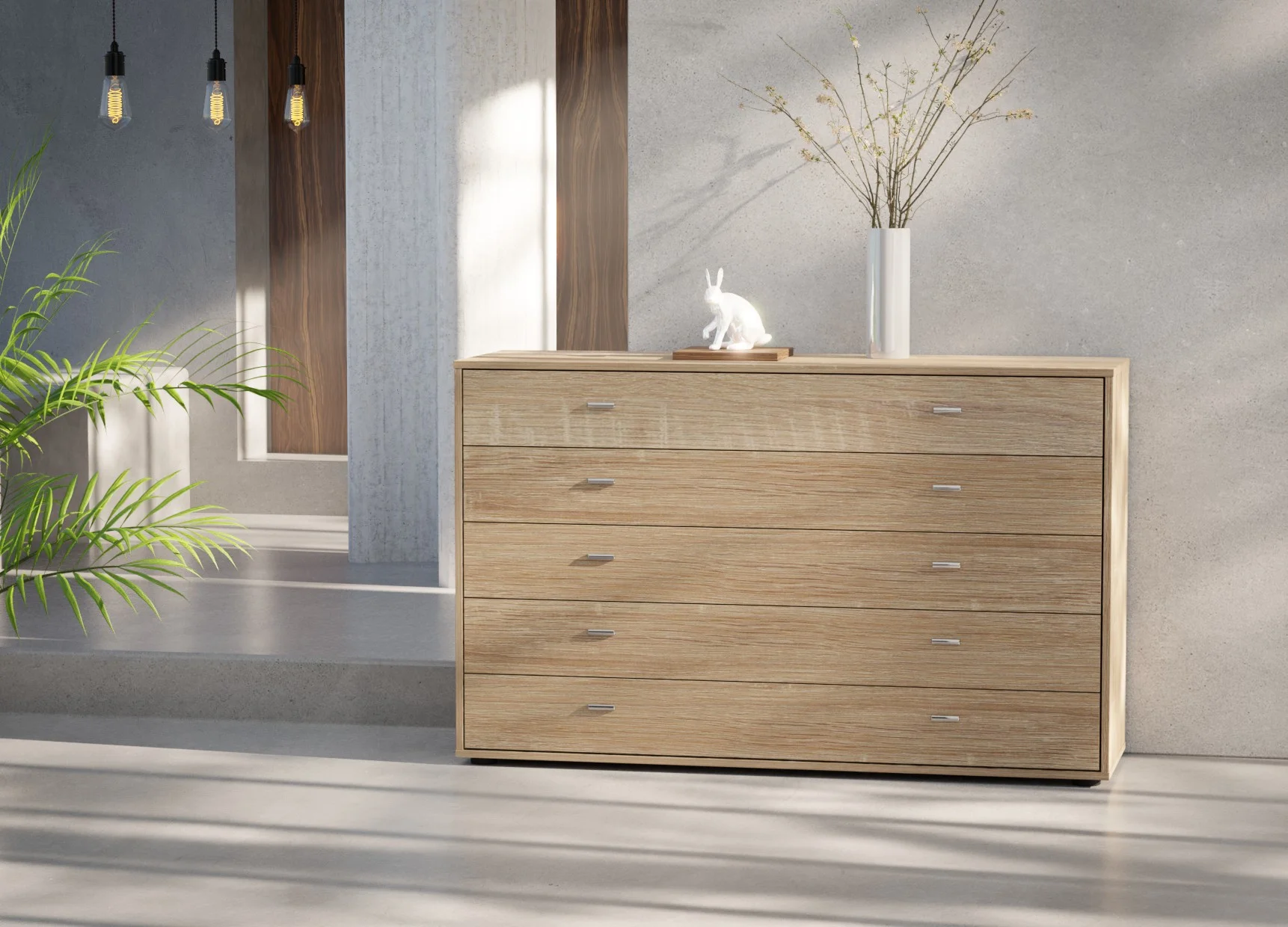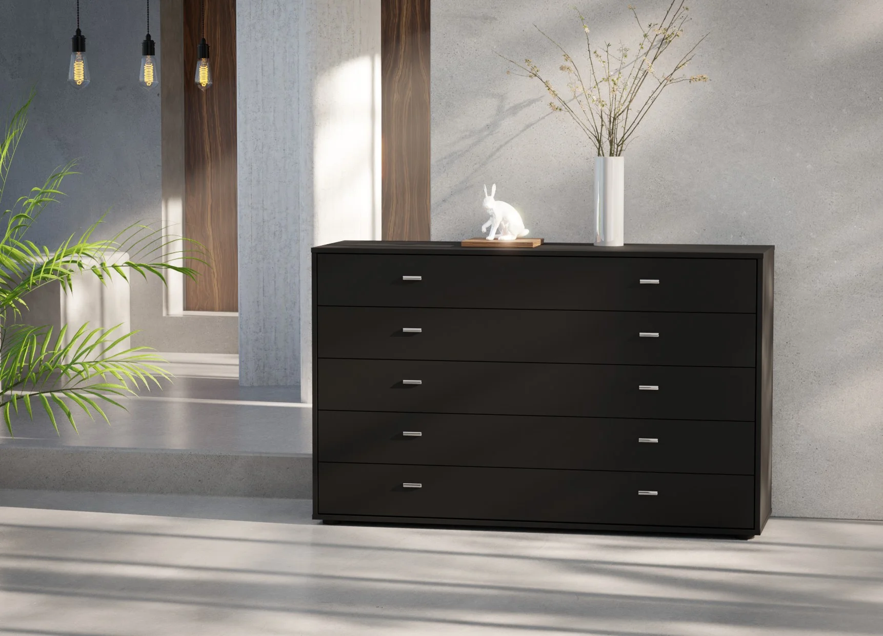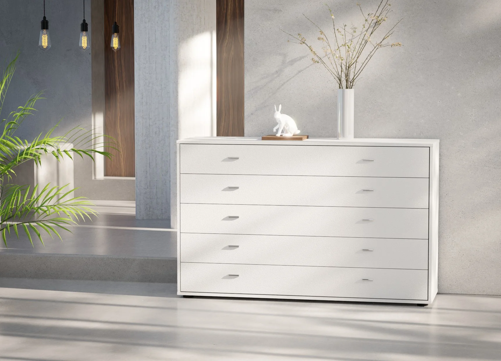Designed to offer generous storage, the Wiemann Tokio 5-drawer chest in 141cm width brings balance and practicality to modern interiors. Its wide layout allows each drawer to feel spacious and easy to use, making it ideal for neatly storing folded clothing, linens, or everyday essentials.