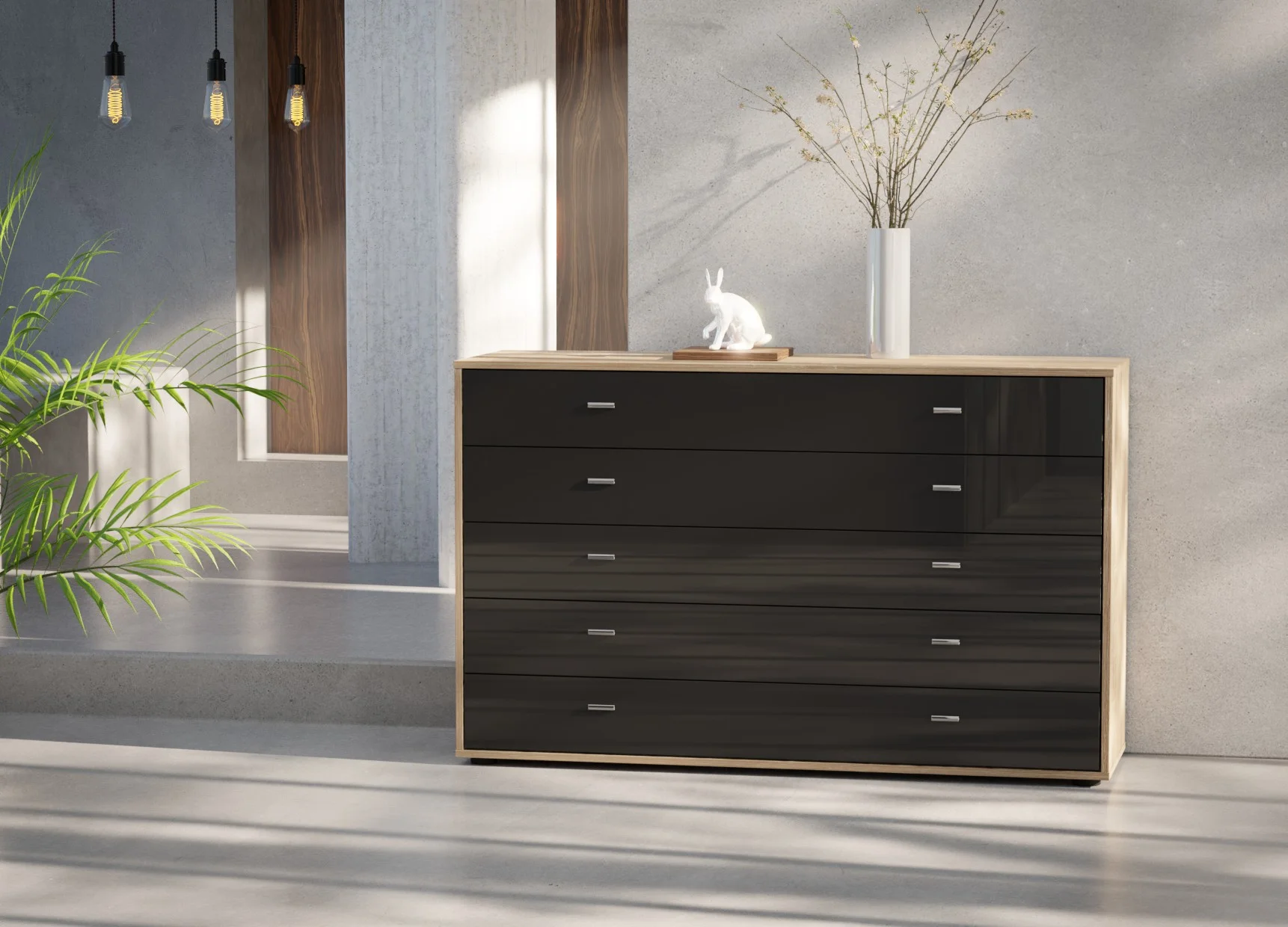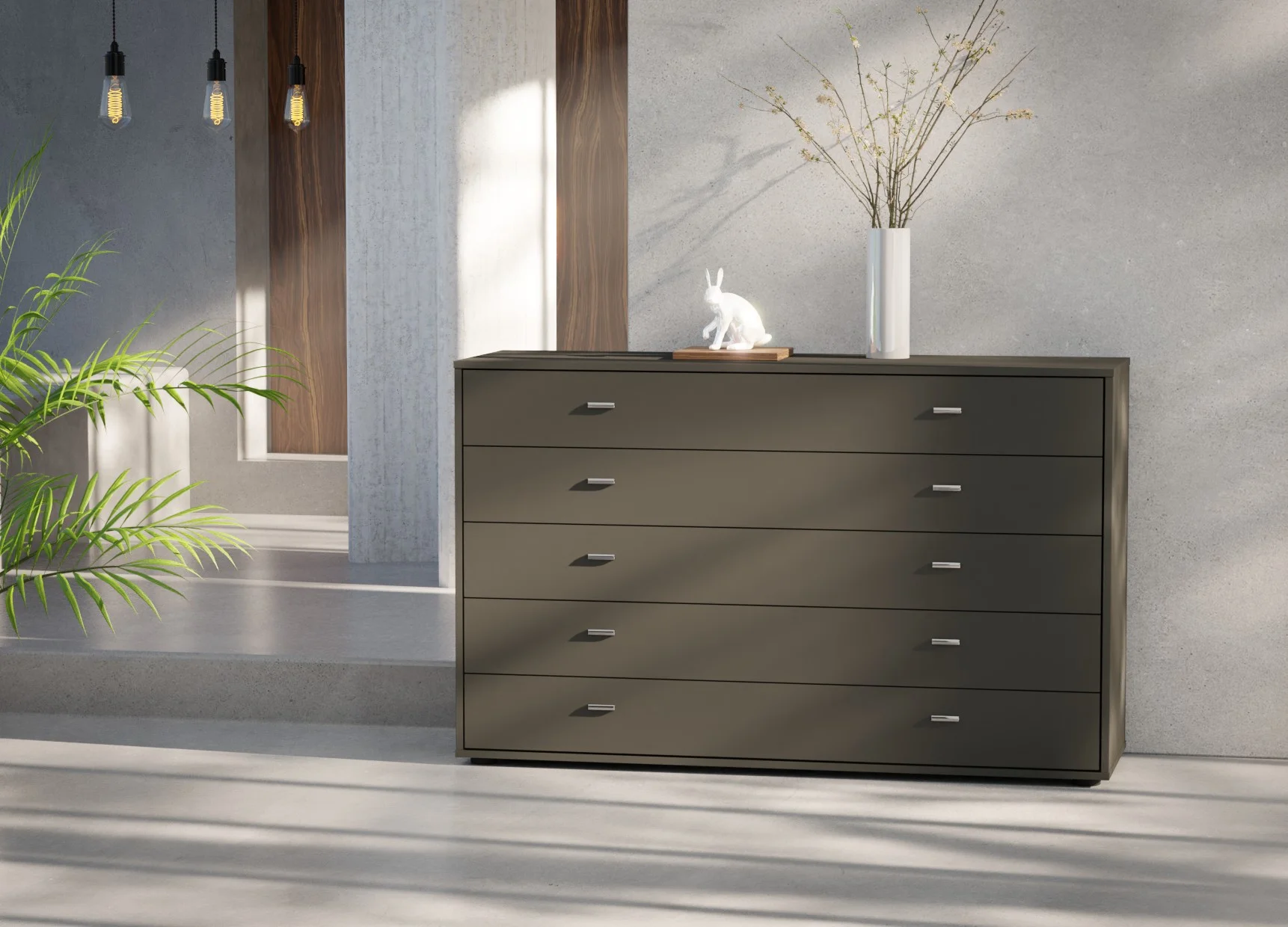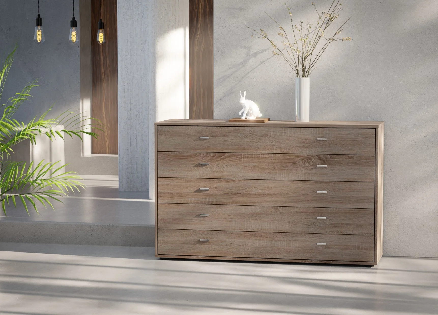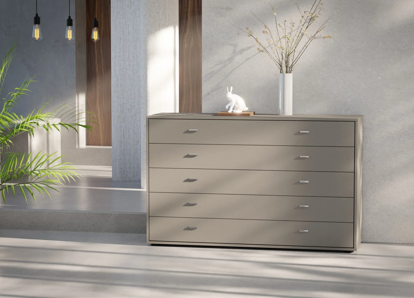 Designed to offer generous storage, the Wiemann Tokio 5-drawer chest in 141cm width brings balance and practicality to modern interiors. Its wide layout allows each drawer to feel spacious and easy to use, making it ideal for neatly storing folded clothing, linens, or everyday essentials.