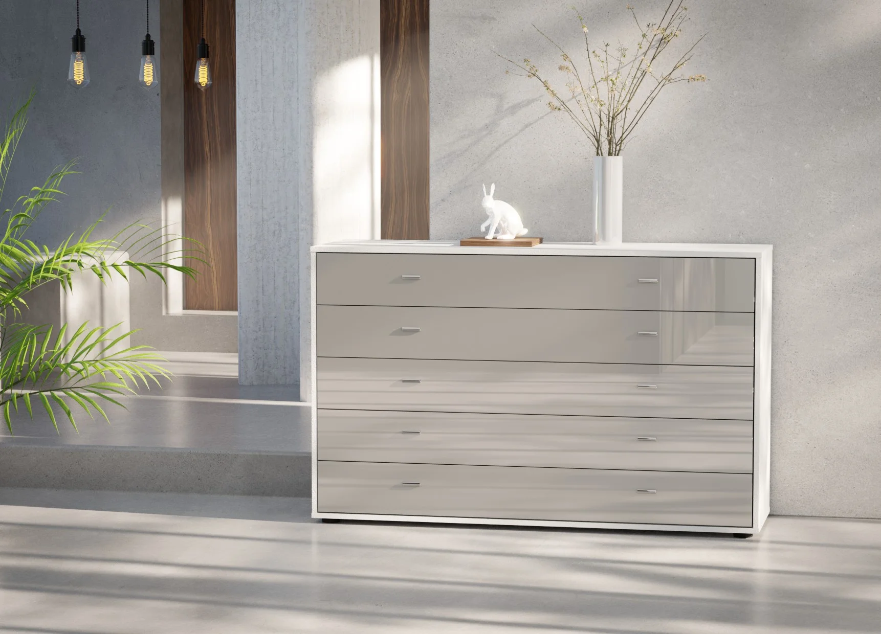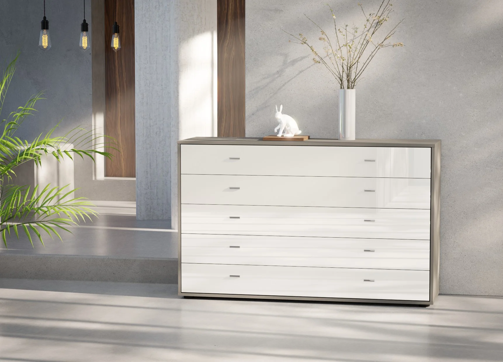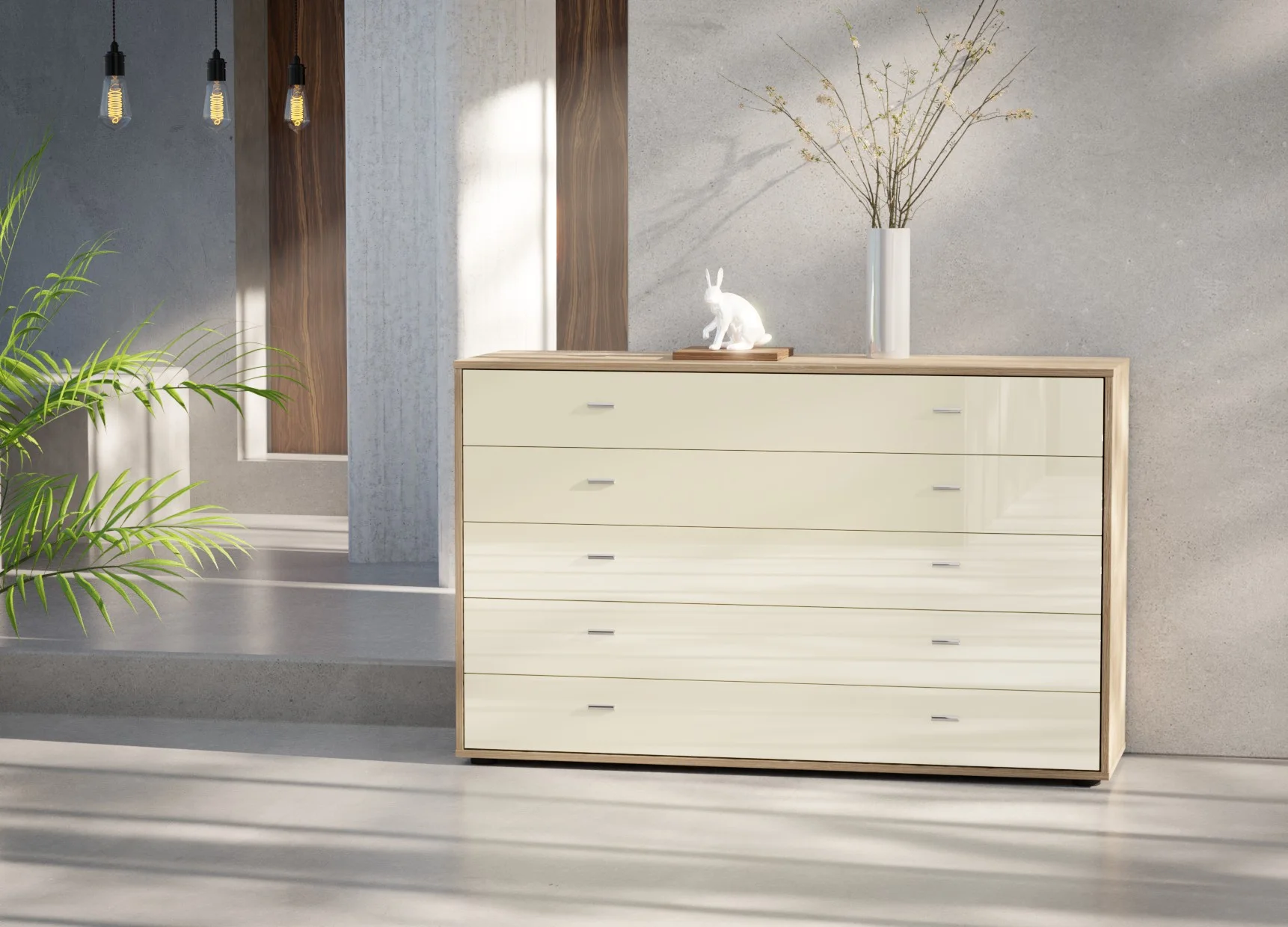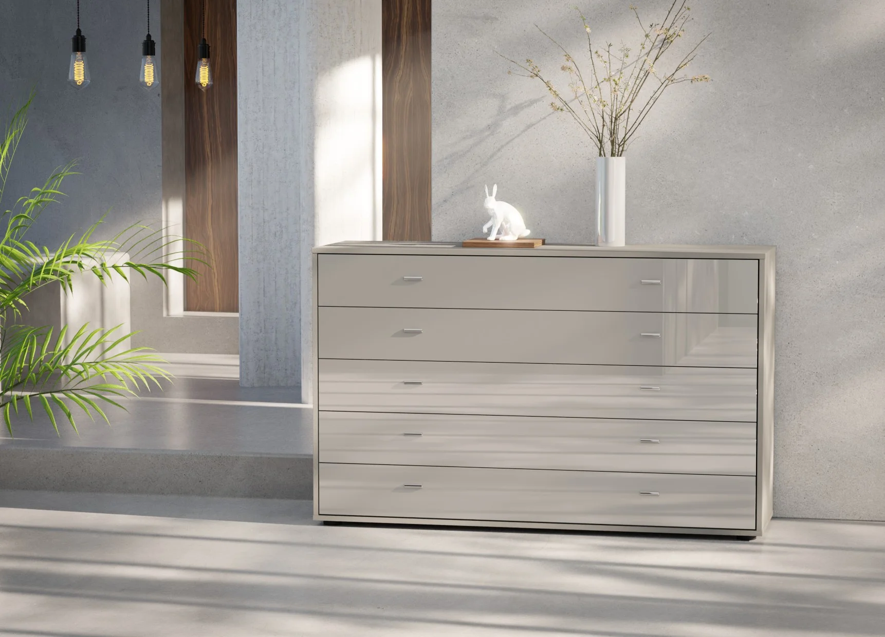 The five drawers are fitted with smooth soft-close mechanisms, ensuring quiet and effortless operation, while the fully assembled construction means it’s ready to use from day one. Finished in Wiemann’s extensive range of colours and optional glass fronts, this chest coordinates seamlessly with other Wiemann bedroom collections. Crafted in Germany from high-quality materials, it offers long-lasting durability with a clean, contemporary look.