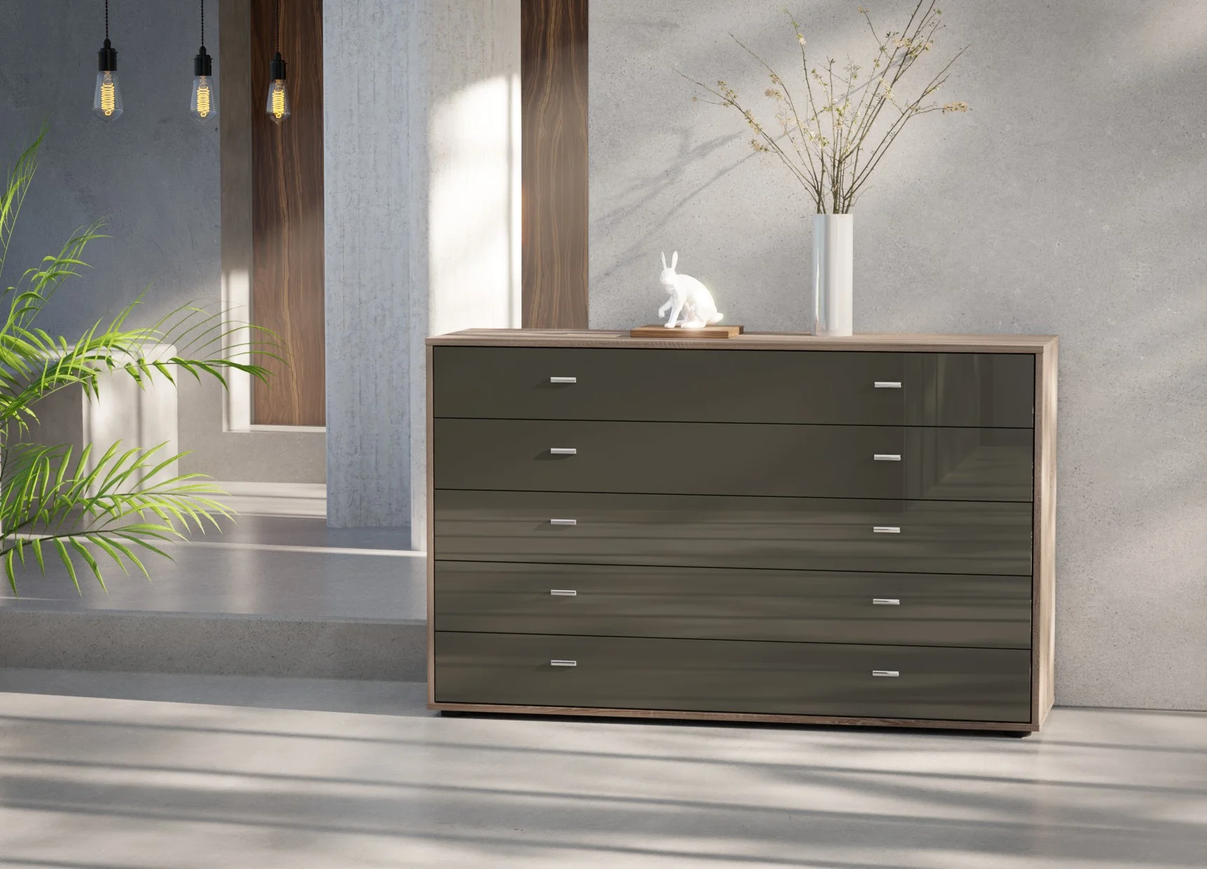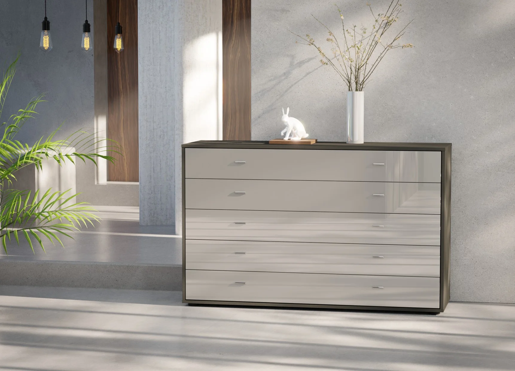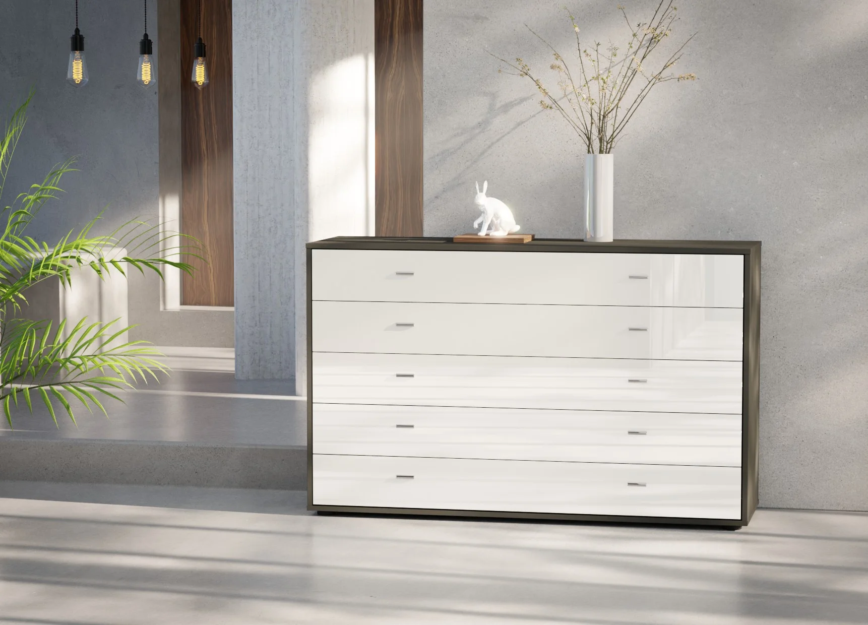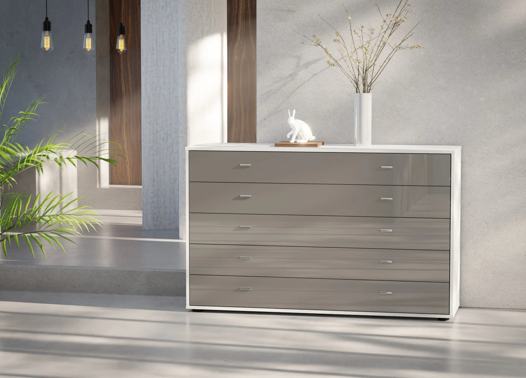 The five drawers are fitted with smooth soft-close mechanisms, ensuring quiet and effortless operation, while the fully assembled construction means it’s ready to use from day one. Finished in Wiemann’s extensive range of colours and optional glass fronts, this chest coordinates seamlessly with other Wiemann bedroom collections. Crafted in Germany from high-quality materials, it offers long-lasting durability with a clean, contemporary look.